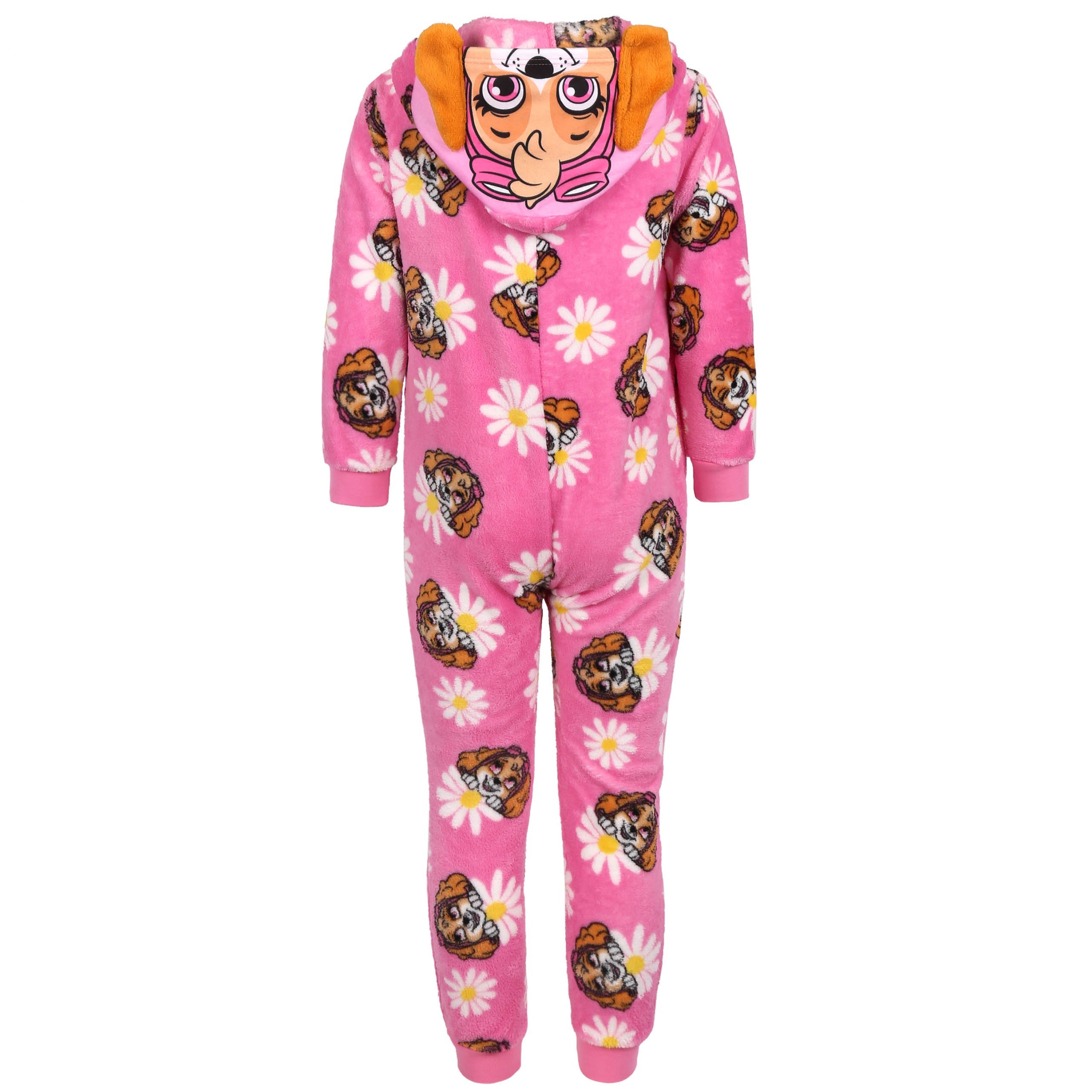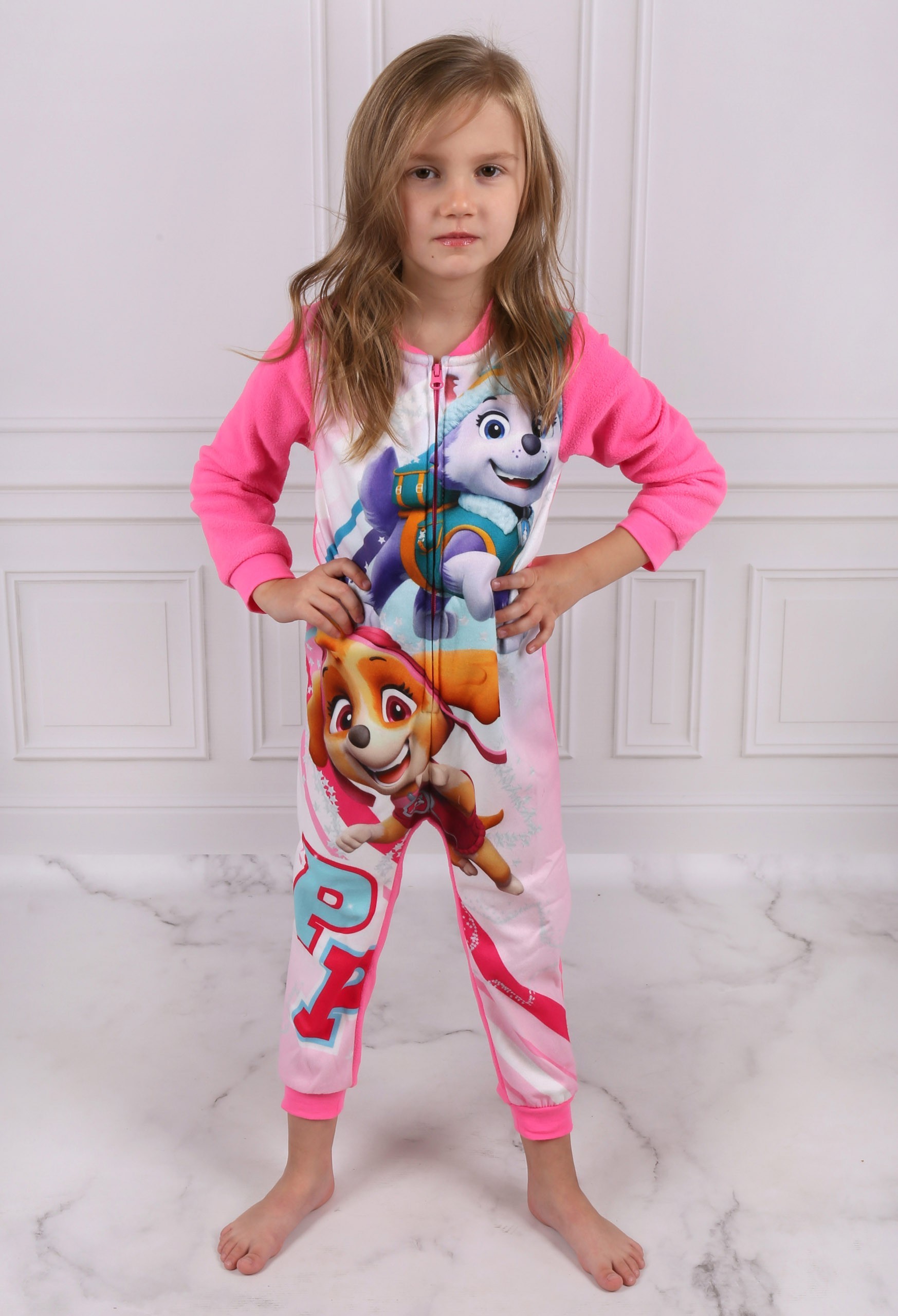 Różowa piżama jednoczęściowa dziecięca z motywem bohaterki z animowanego serialu Psi Patrol, z kapturem.