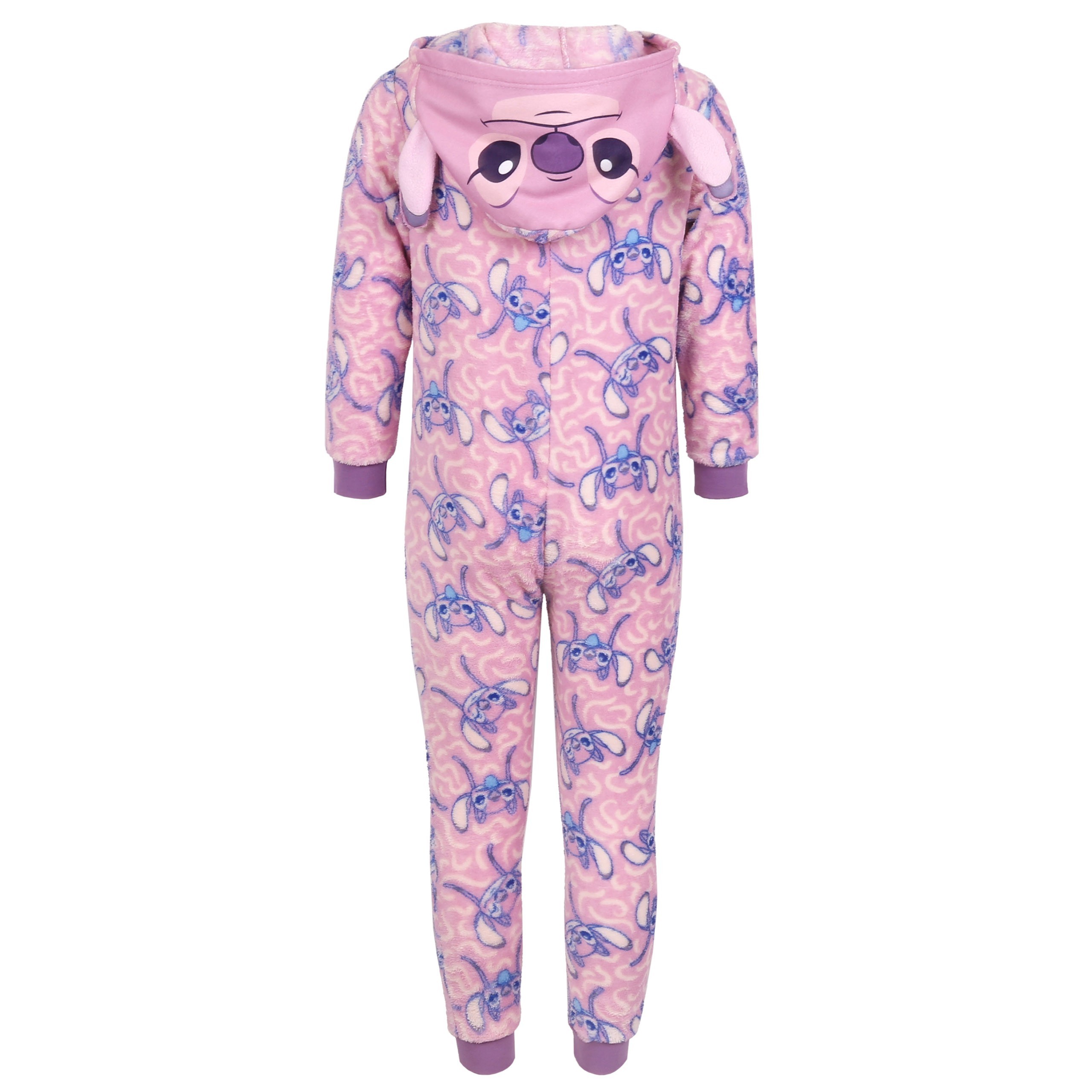 Różowa piżama jednoczęściowa dziecięca z motywem z popularnej bajki "Stitch i Lilo", z kapturem.