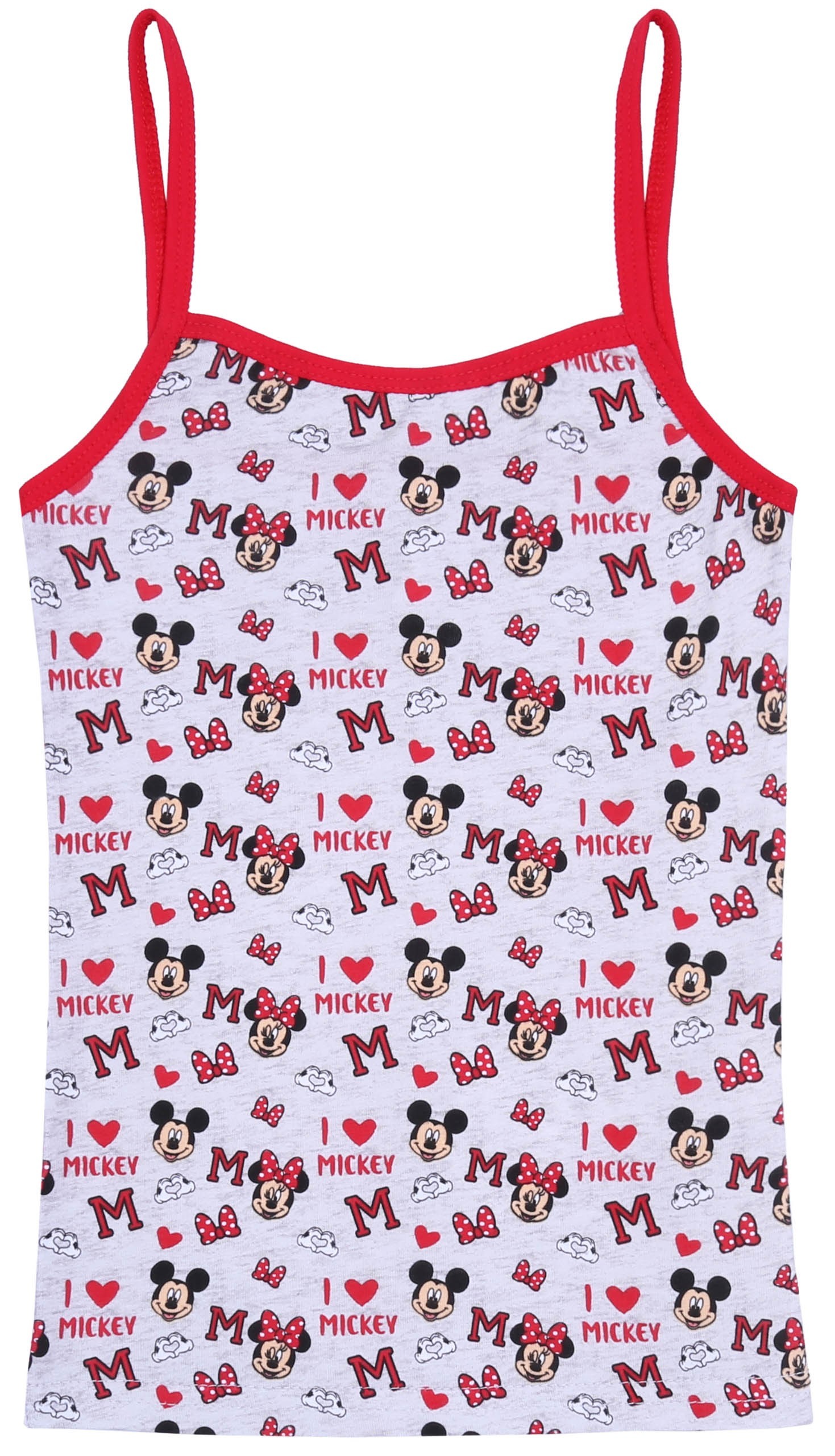 Szaro-czerwony komplet bielizny dziewczęcej w powtarzające się wizerunki Myszki Mickey i Minnie.