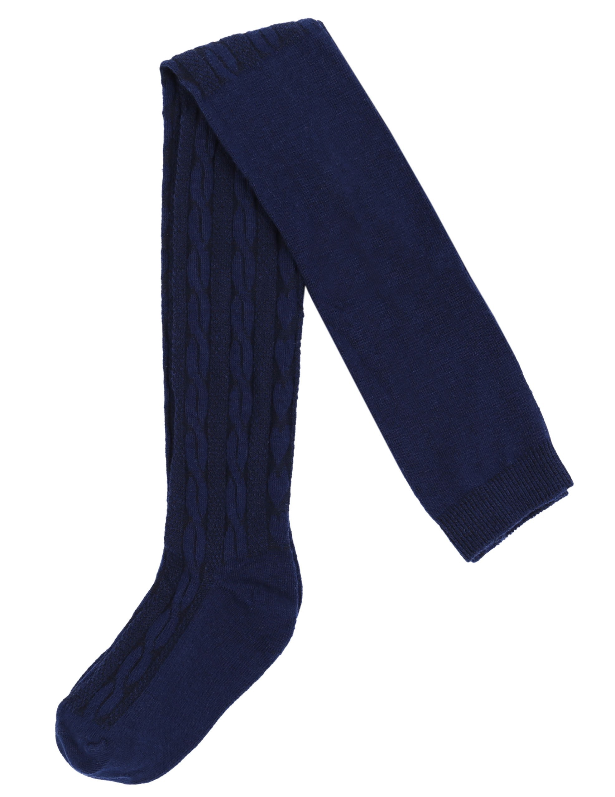 Komplet trzech granatowych, dziewczęcych rajstopy w pionowe wzory.
