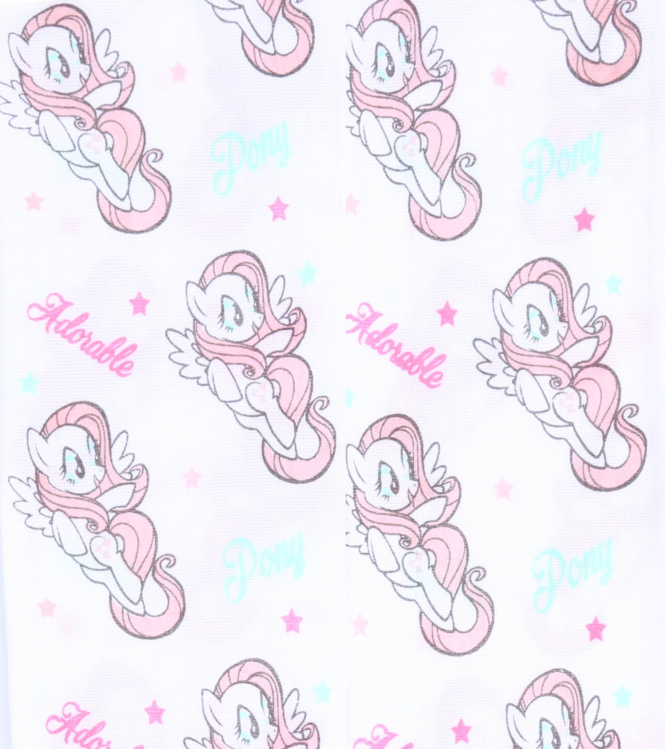 Jedna para, białych, dziewczęcych rajstop w powtarzający się wizerunek kucyka Fluttershy,