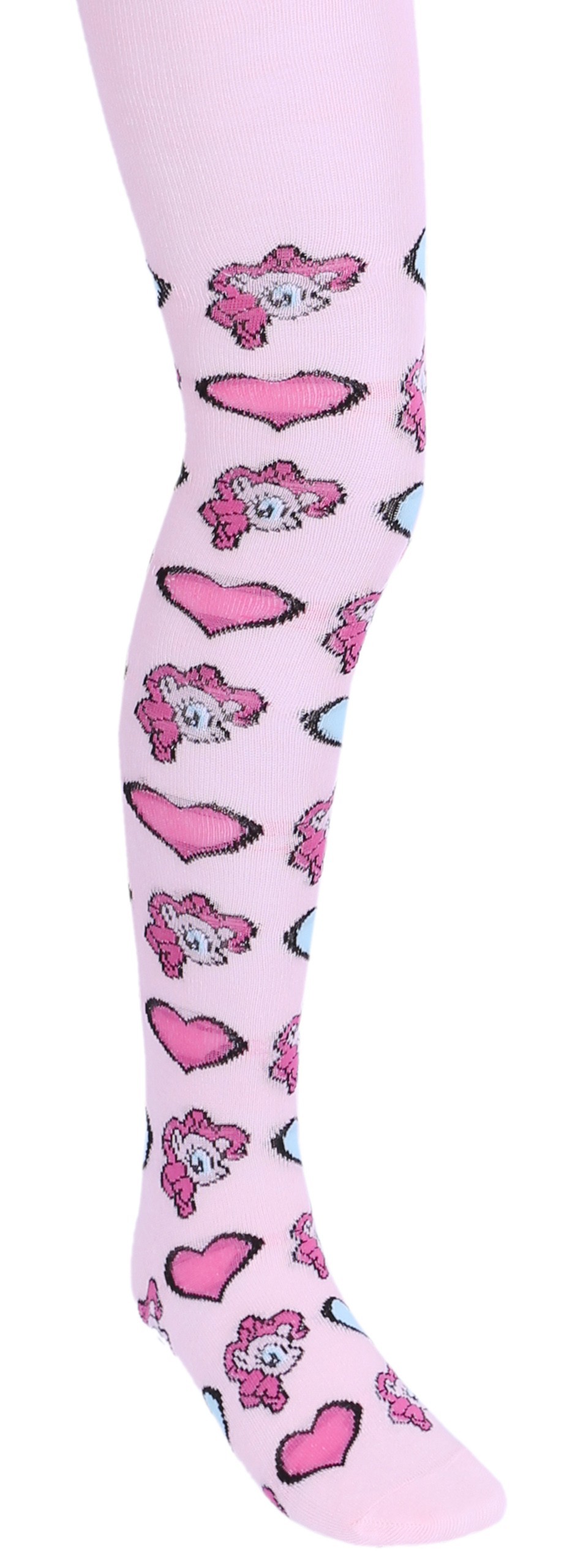 Jedna para, różowych, dziewczęcych rajstop w powtarzający się wizerunek kucyka Pinkie Pie,
