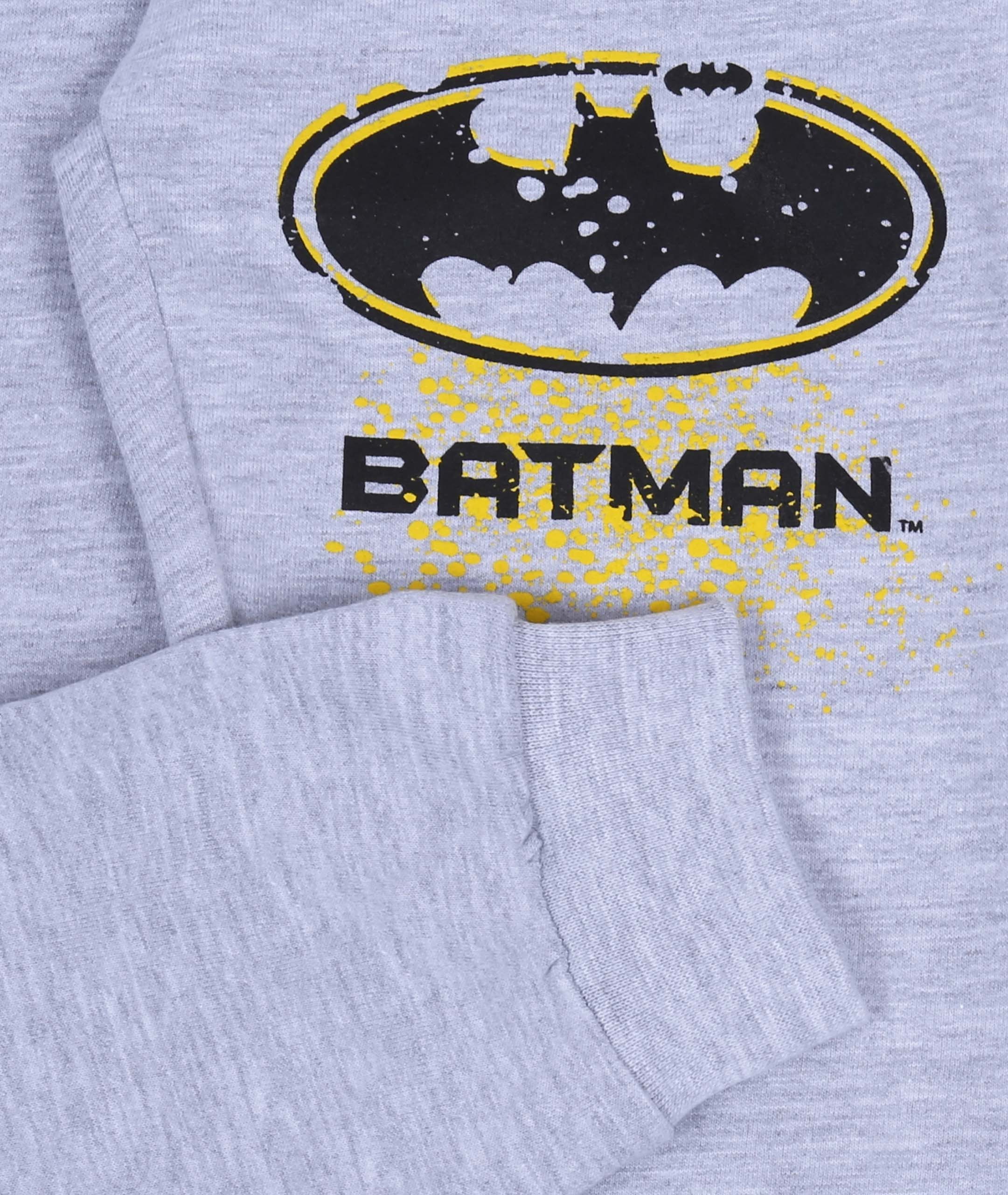 Szare, melanżowe spodnie dresowe z logiem superbohatera Batmana.