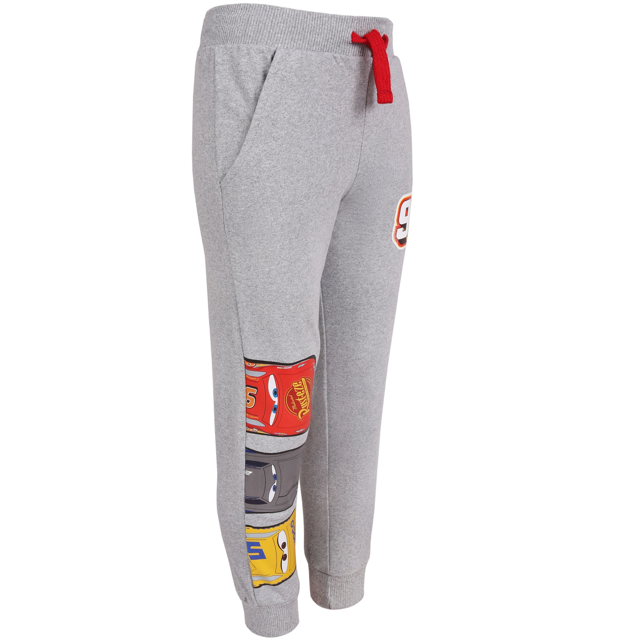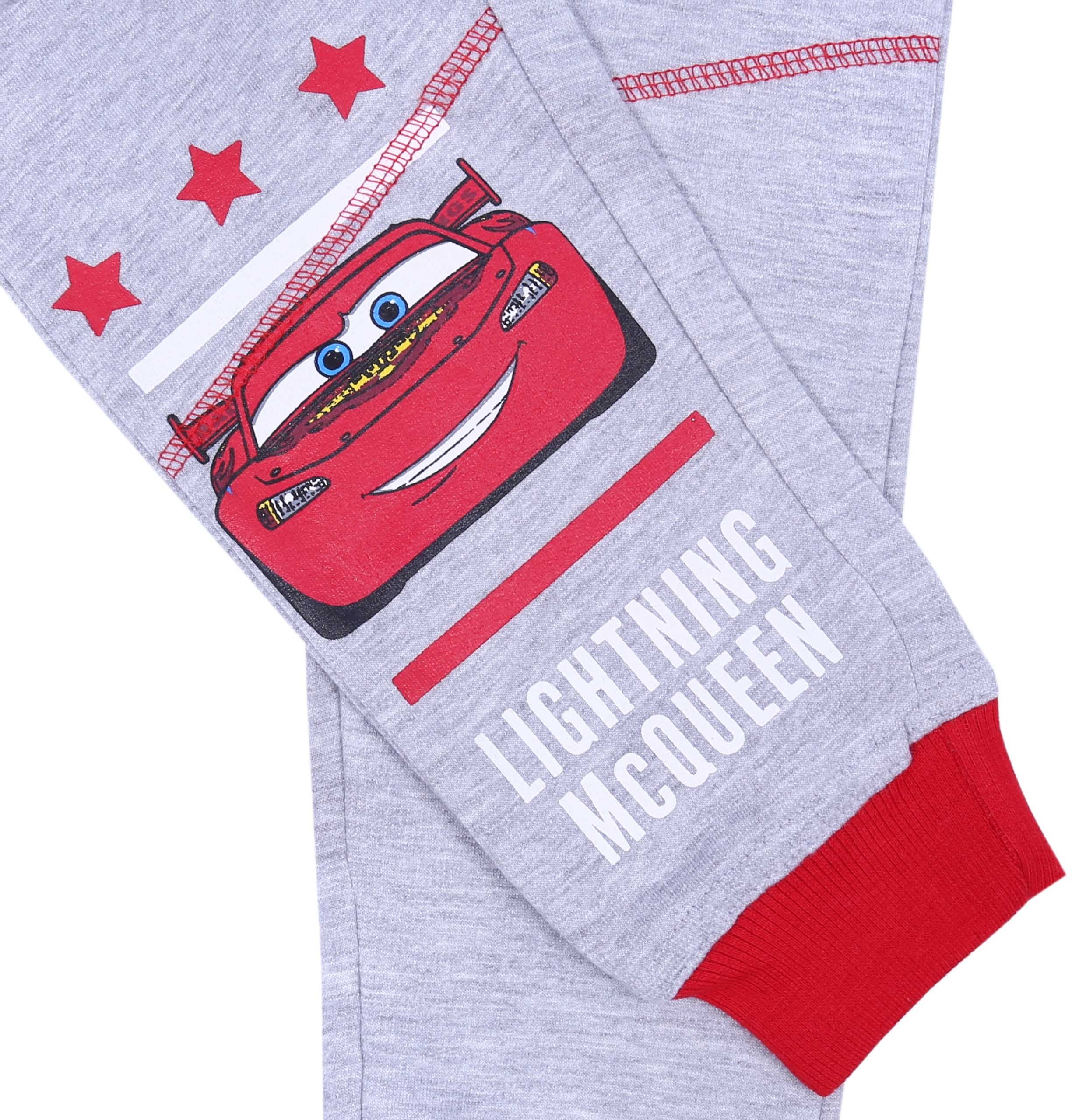 Szare spodnie dresowe z przodu z nadrukiem wizerunków postaci filmu animowanego "Auta".