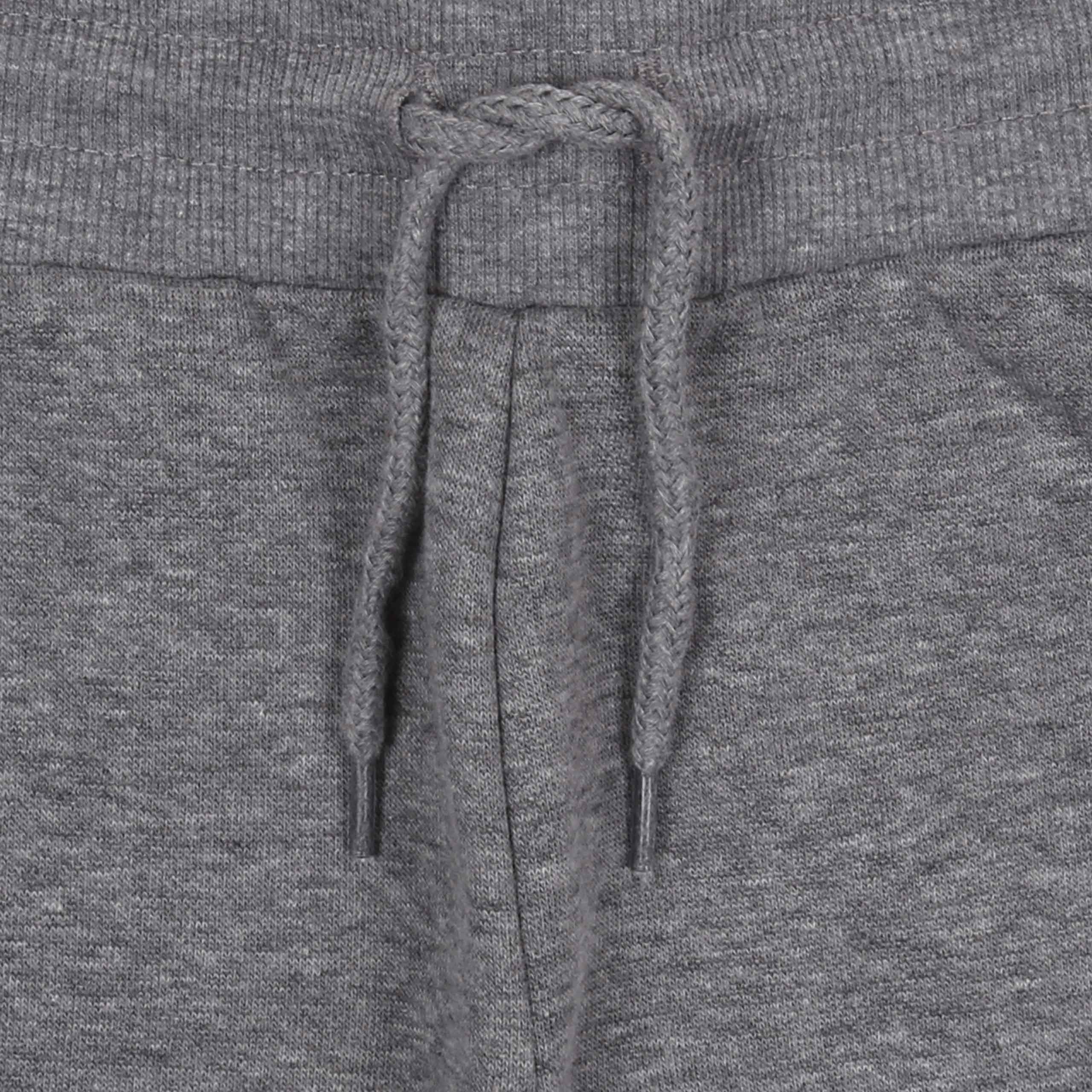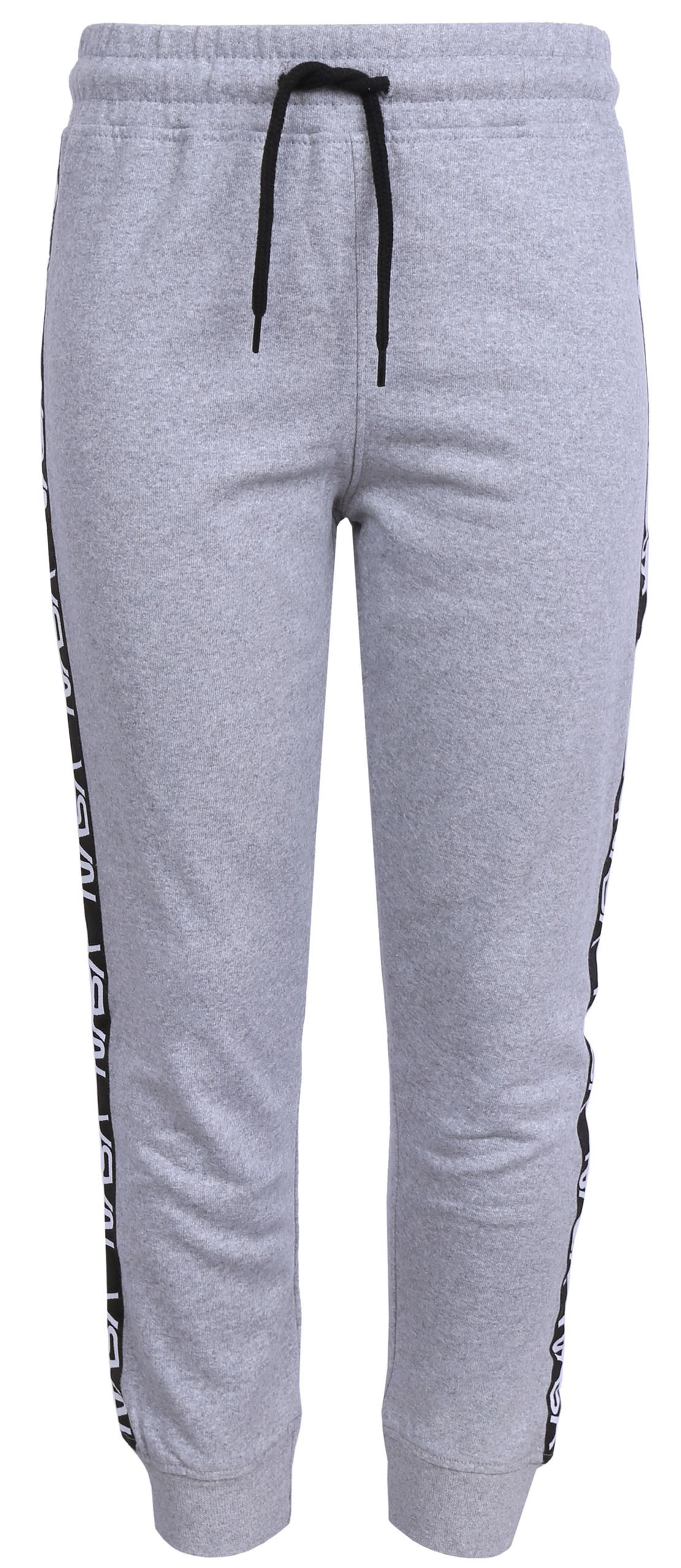 Szare spodnie dresowe z lampasami po bokach, w powtarzający się napis "NASA".