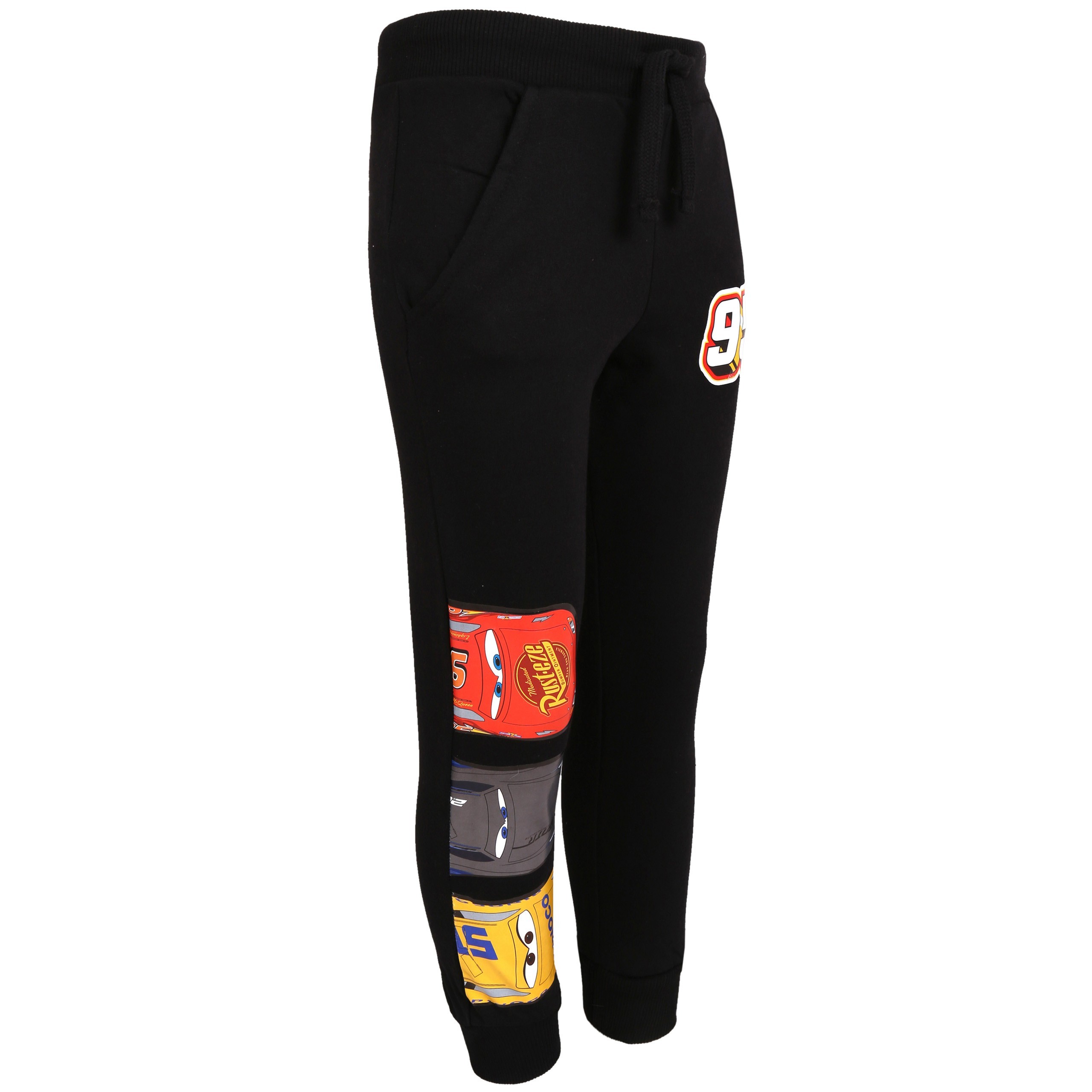 Czarne spodnie dresowe z przodu z nadrukiem wizerunków postaci filmu animowanego "Auta".