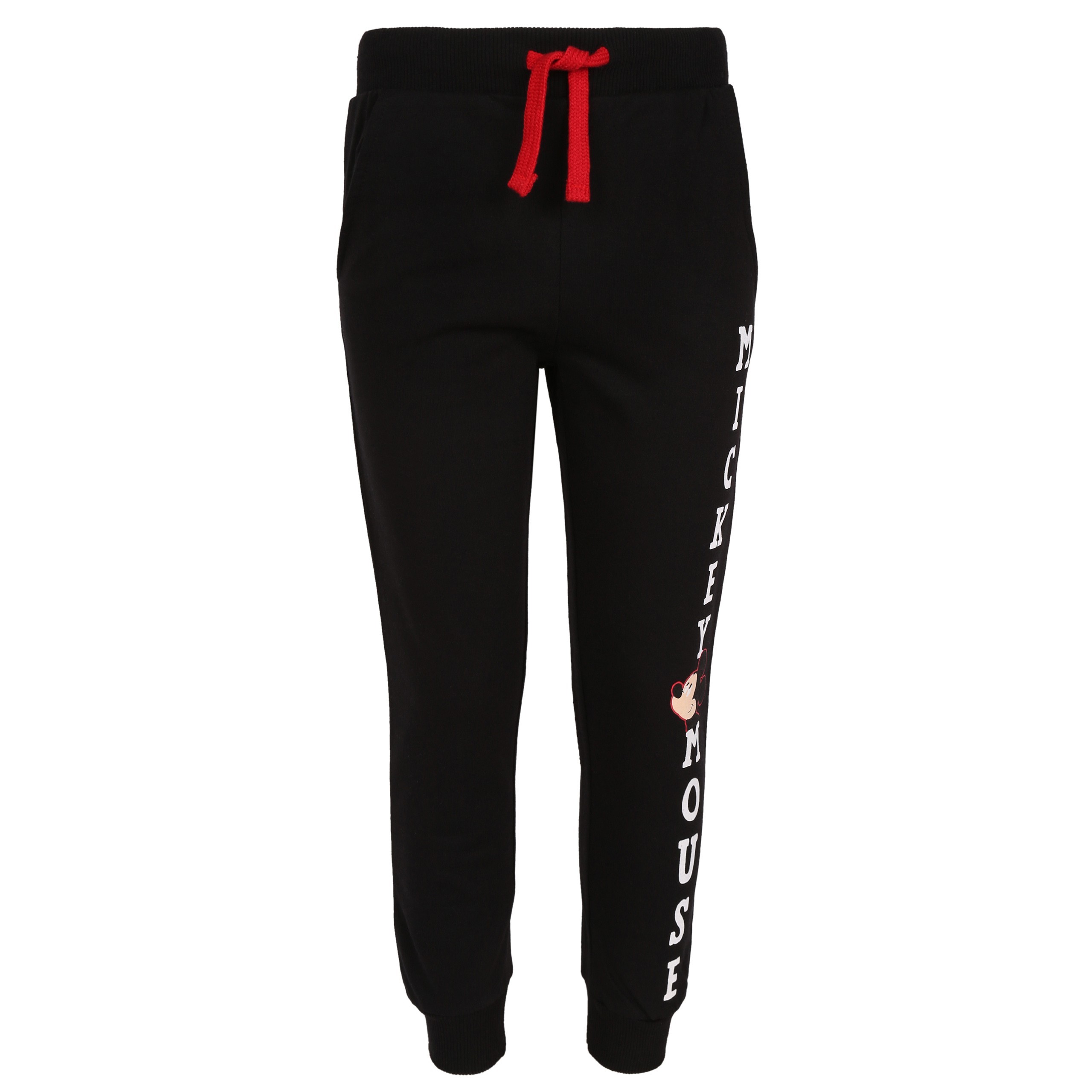 Czarne spodnie dresowe z przodu z nadrukiem napisu MICKEY MOUSE i jego wizerunkiem.