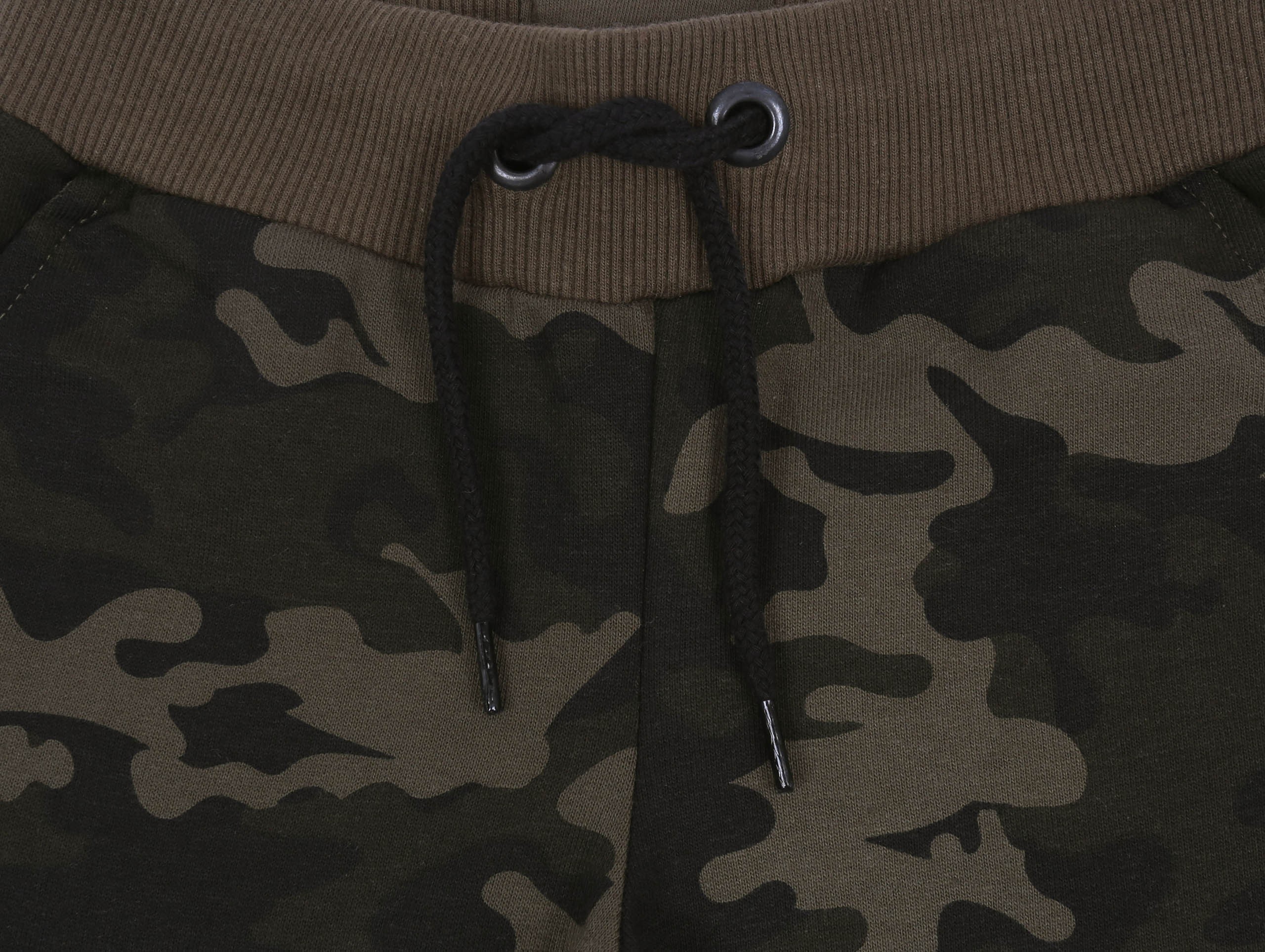 Zielone spodenki dresowe, w moro wzór.