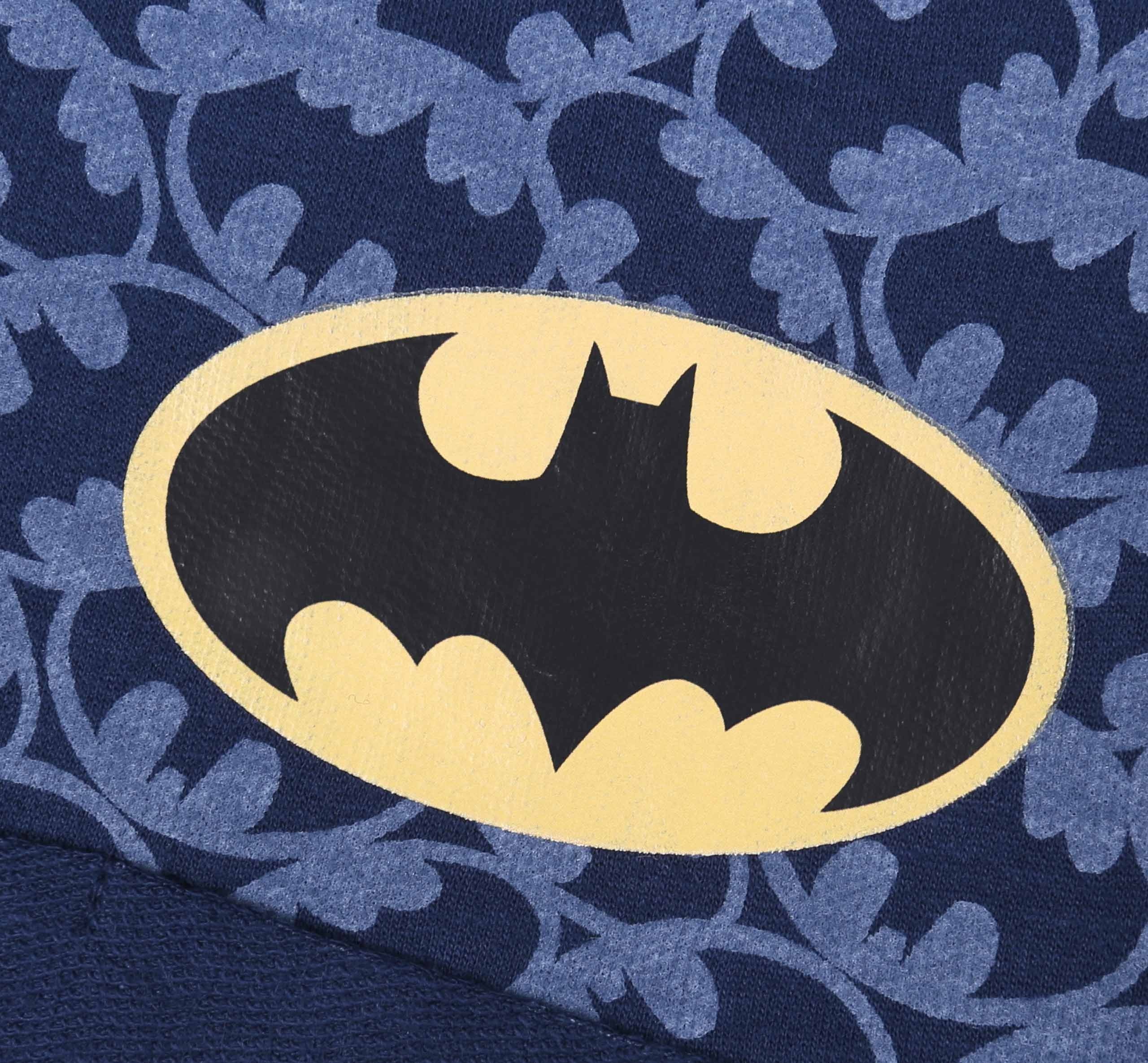 Granatowe, chłopięce szorty z motywem bohatera serii komiksowej - Batmana.