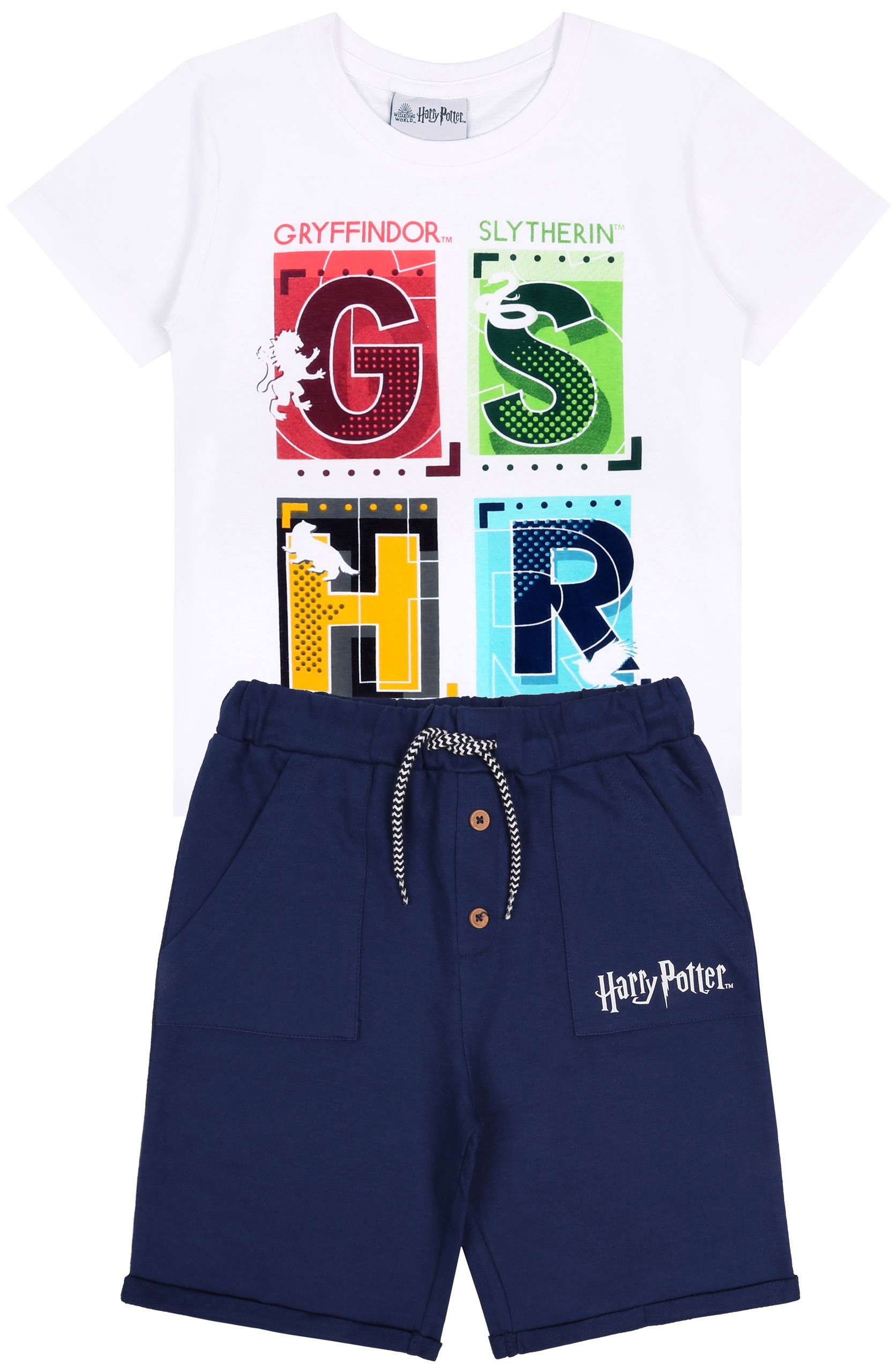 Zestaw bluzka na krótki rękaw i krótkie, granatowe spodenki z motywem Harrego Pottera.