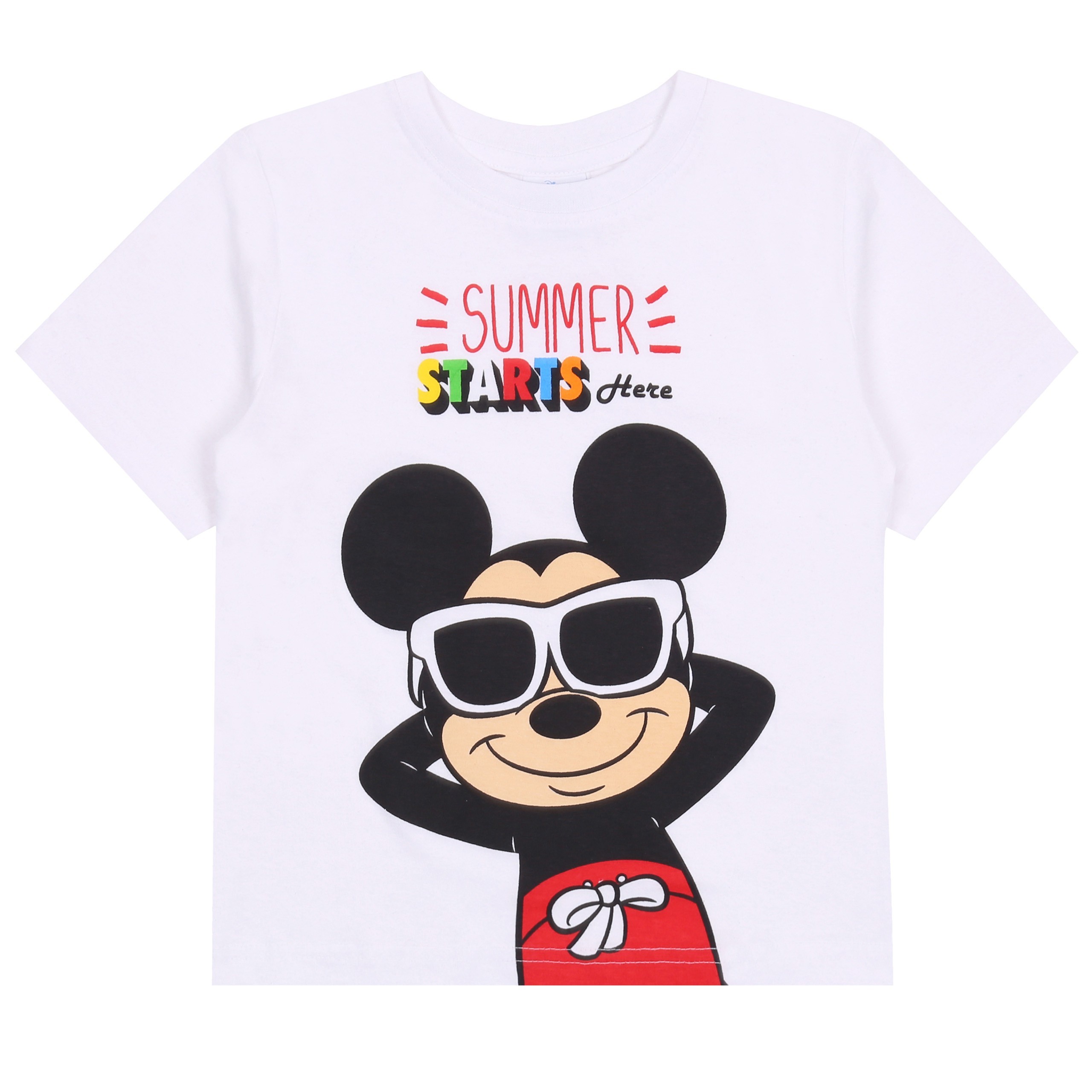 Chłopięcy komplet składający się z koszulki na krótki rękaw oraz krótkich spodenek.