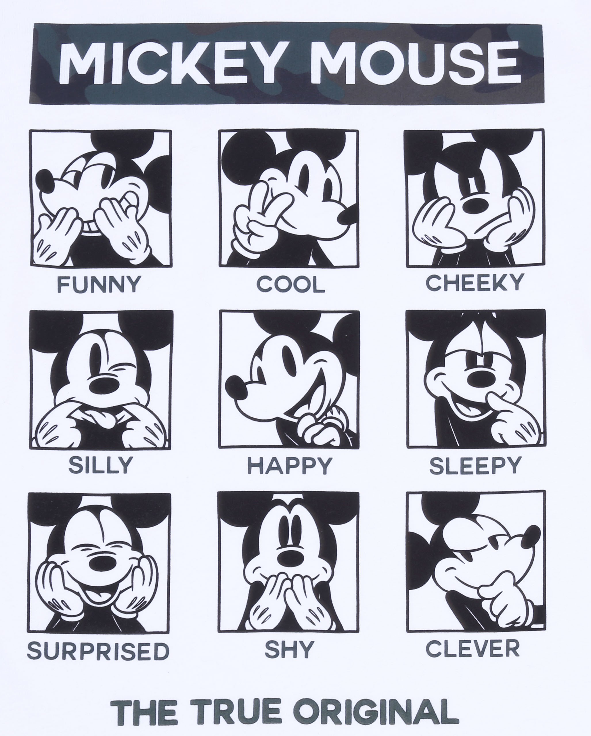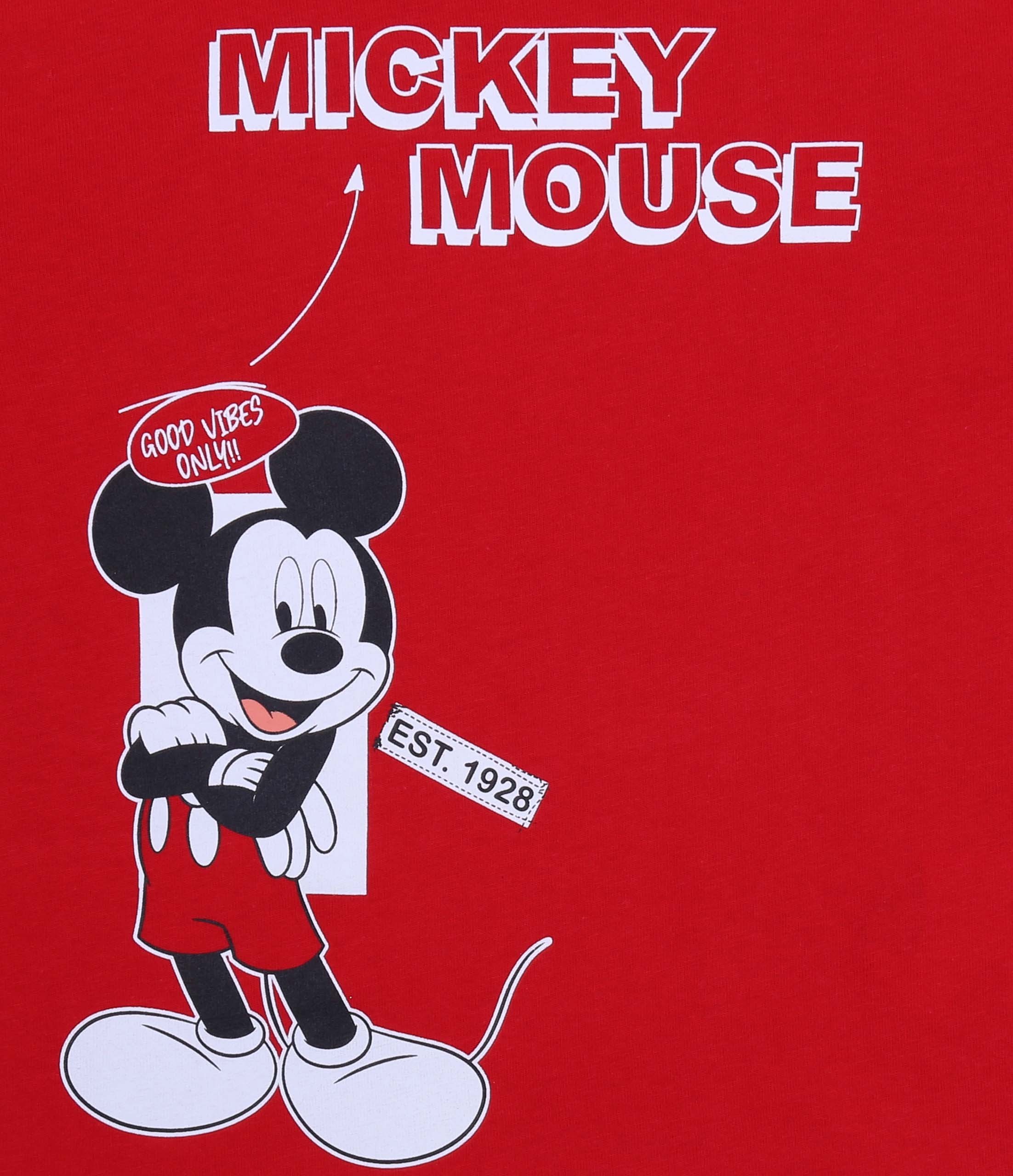 Z przodu nadruk z wizerunkiem Myszki Mickey, dekolt wykończony delikatnym ściągaczem.