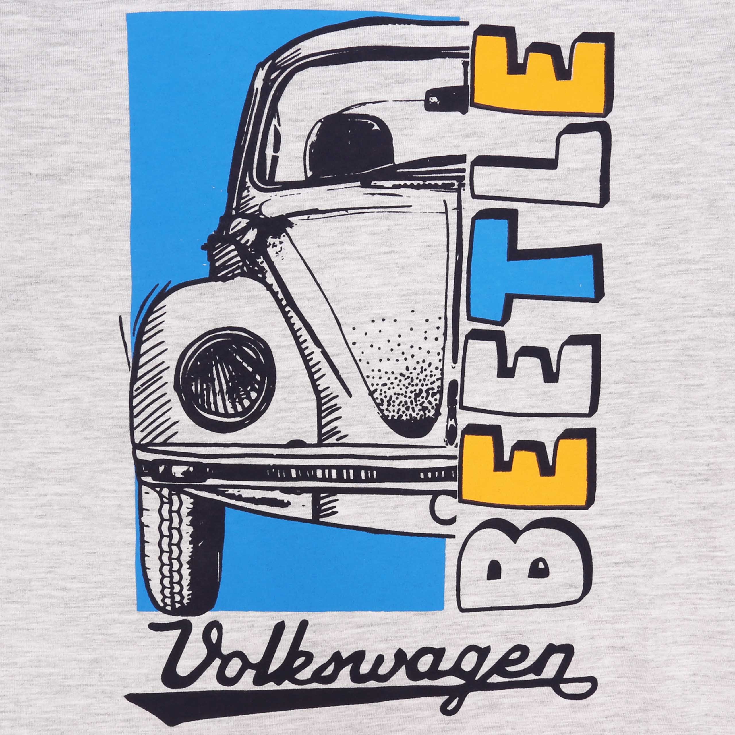 Szara melanżowa bluzka na długi rękaw, z przodu z nadrukiem samochodu marki Volkswagen.