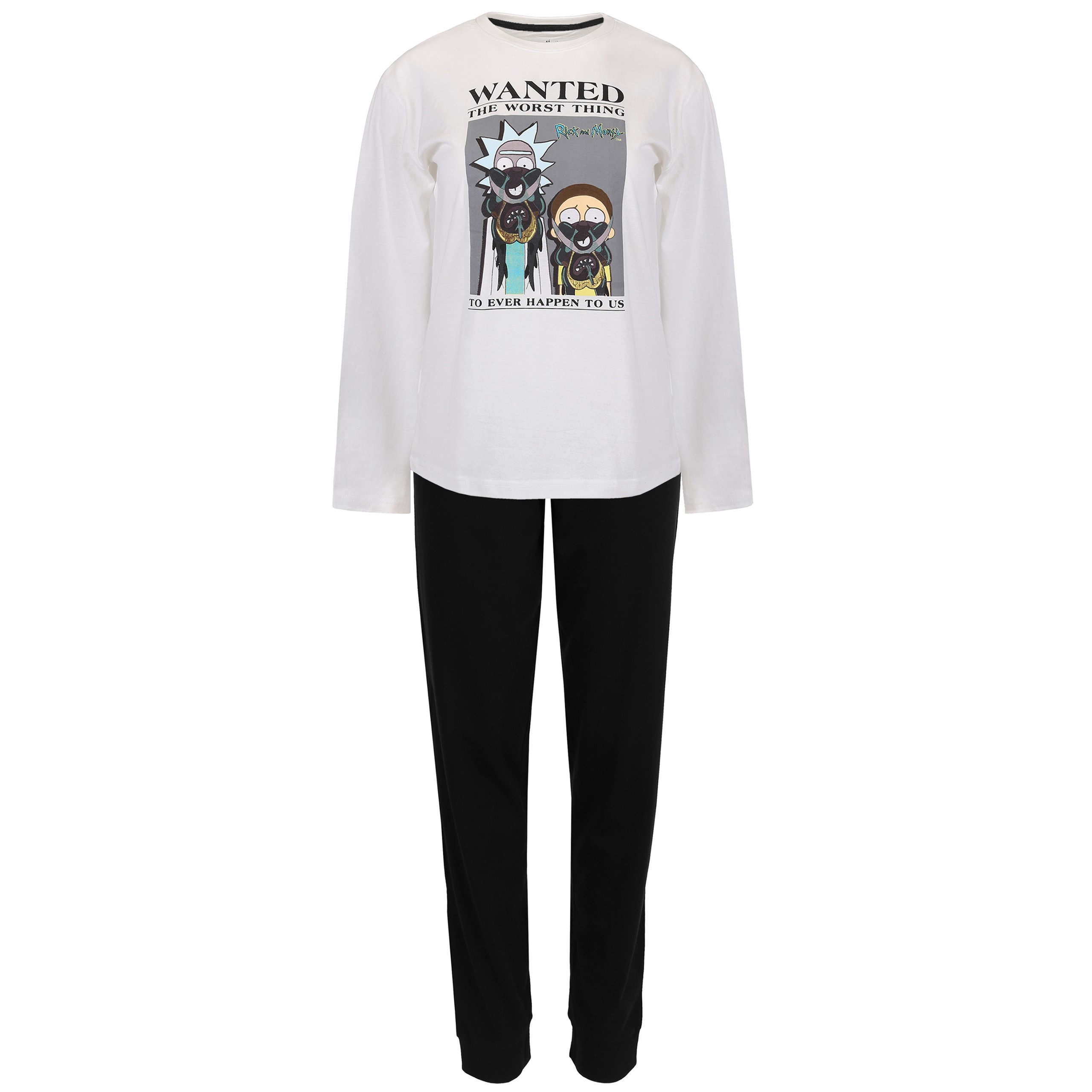 Biało-czarna, długa piżama dwuczęściowa z nadrukiem bohaterów bajki Rick i Morty.