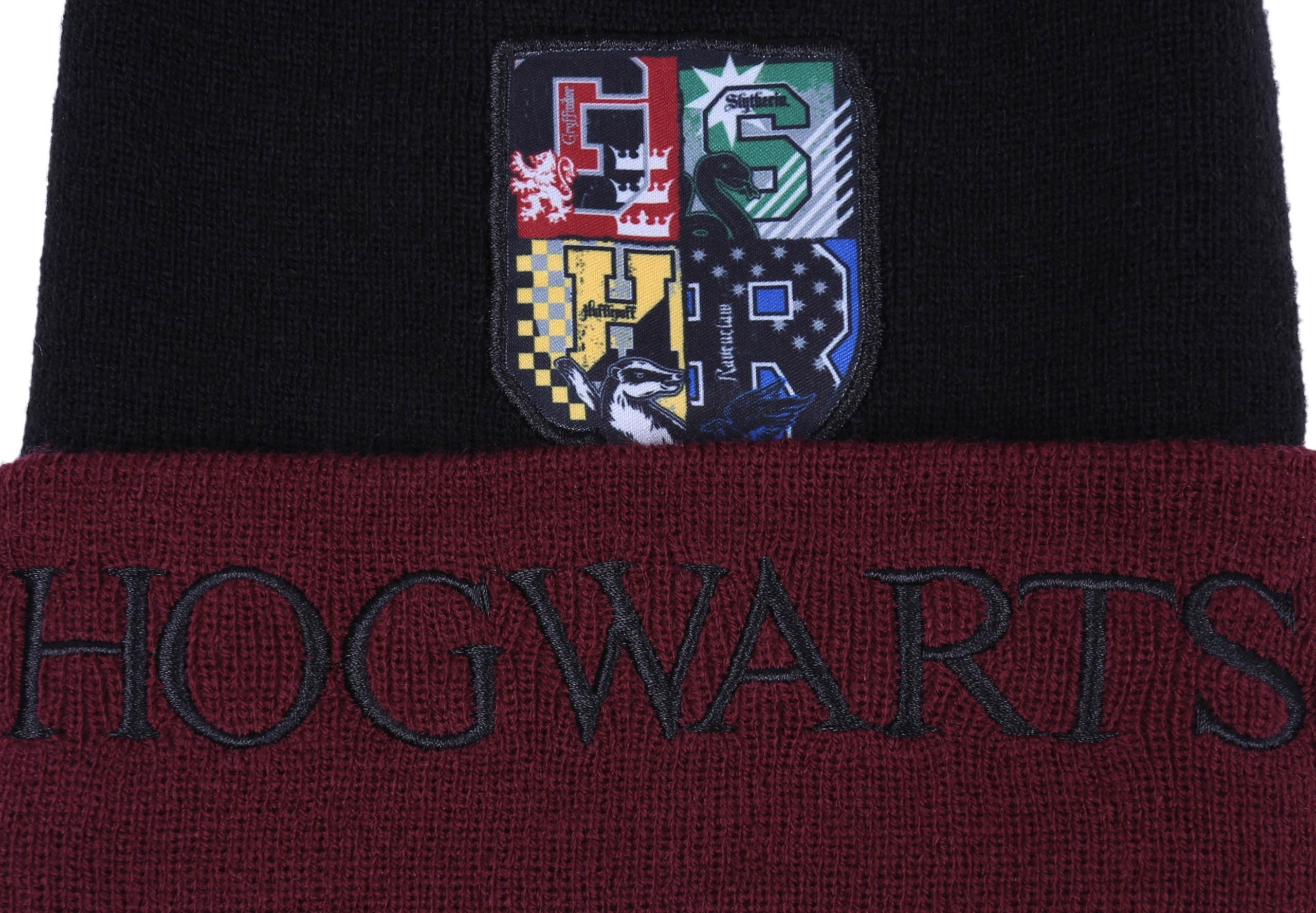 Czarno - bordowa, zimowa czapka z motywem Harry'ego Potter'a.