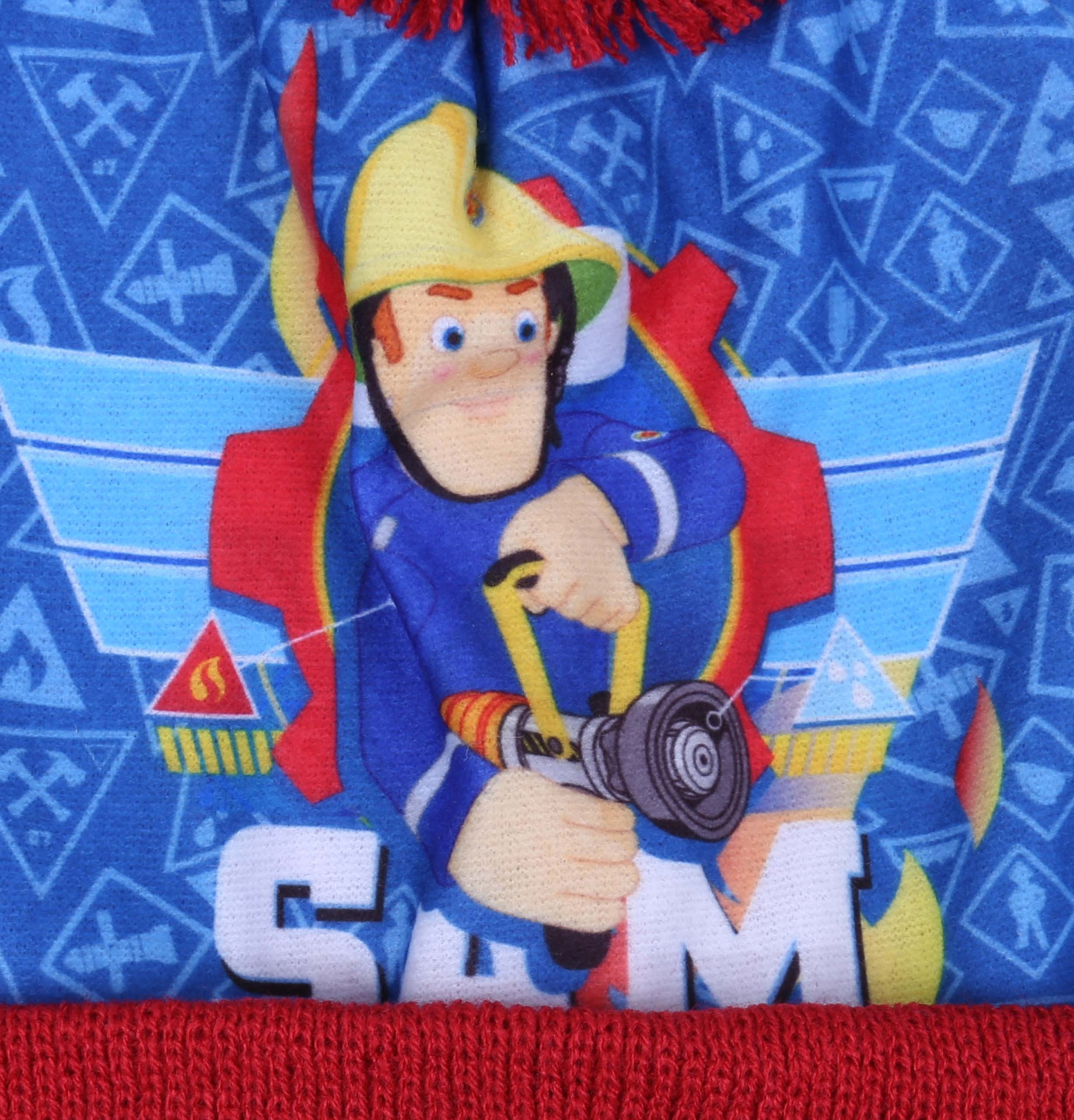 Gruba, zimowa czapka dla chłopca, z motywem Strażaka Sama.