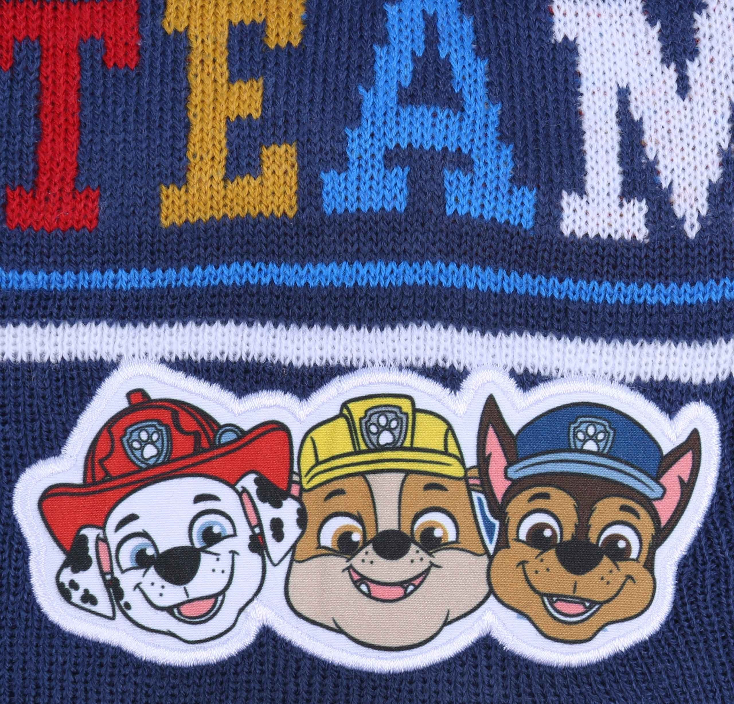 Z przodu wizerunki piesków z filmu animowanego "Psi Patrol", u góry miękki pompon.
