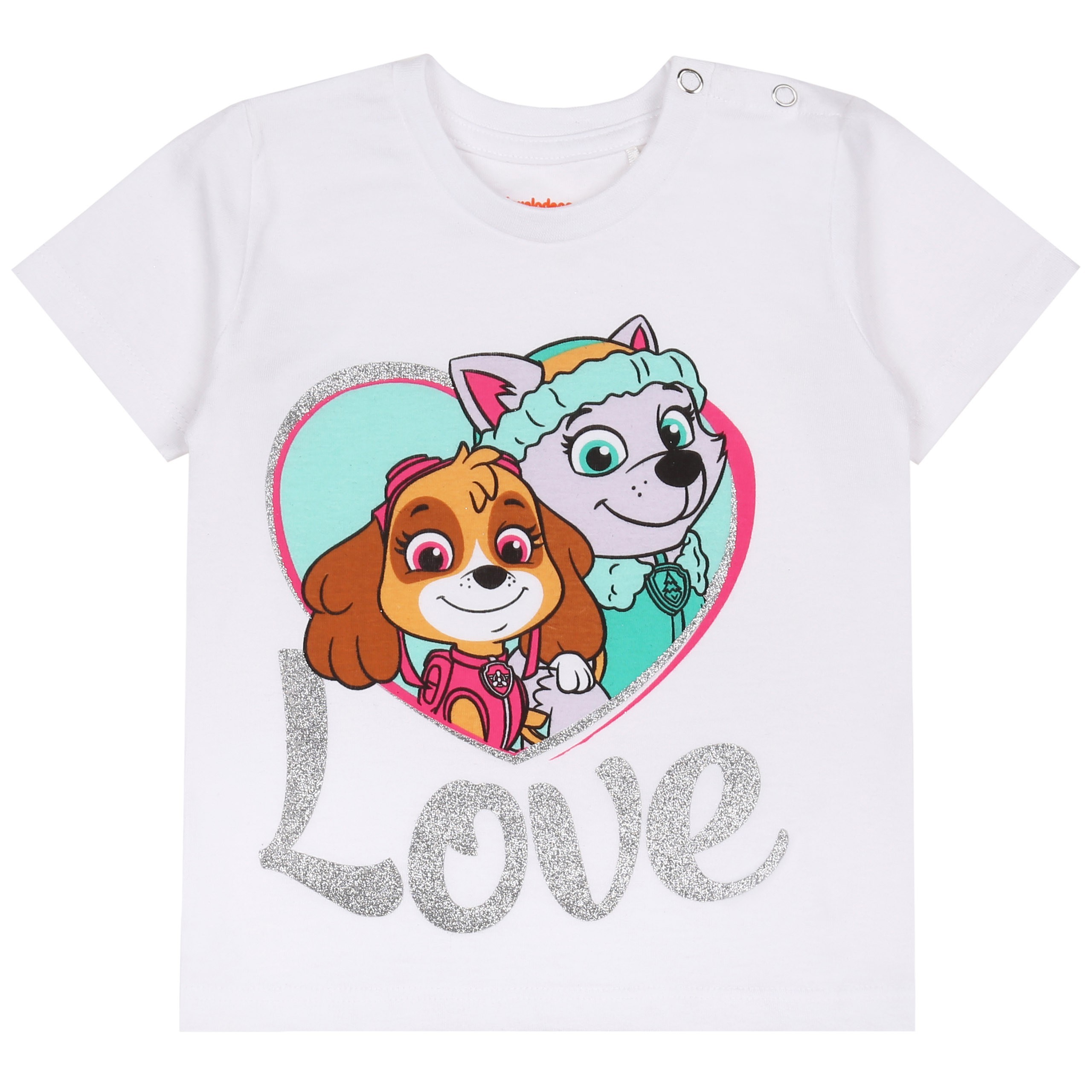 Biały komplet niemowlęcy dla dziewczynki z uroczą grafiką Skye i Everest z serialu animowanego.