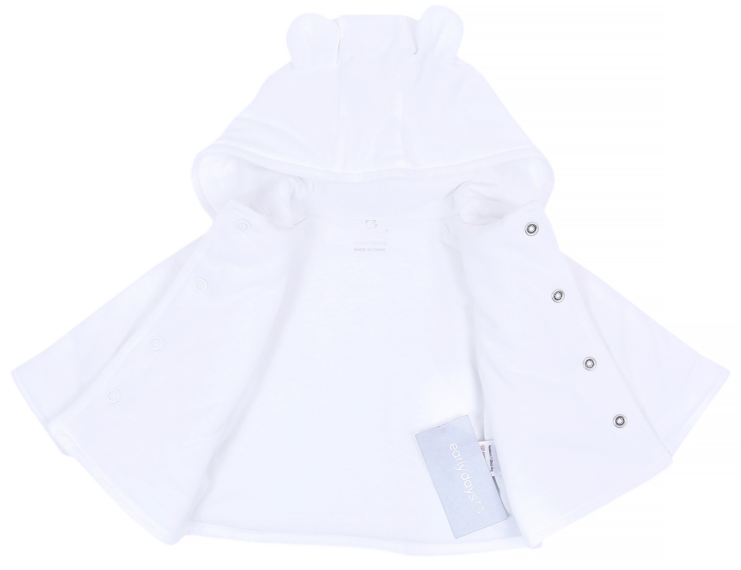 Posiada kaptur, wykonana z bawełnianej dzianiny dresowej odpowiedniej dla twojego maluszka.