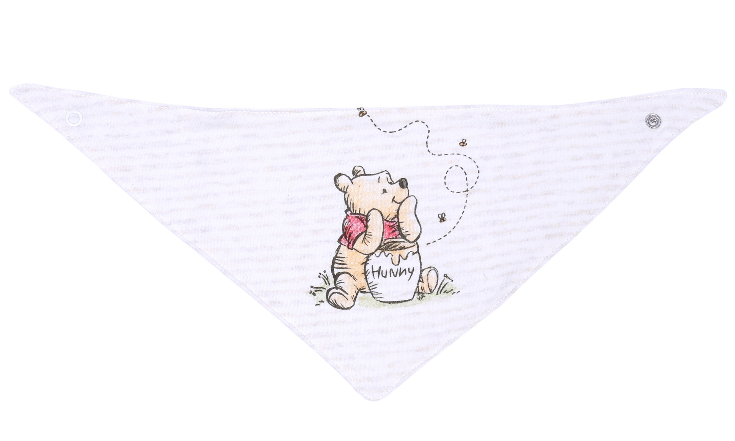 Zestaw trzech sztuk śliniaków, w beżowo - białych kolorach z motywem filmu familijnego Kubuś Puchatek i Przyjaciele.