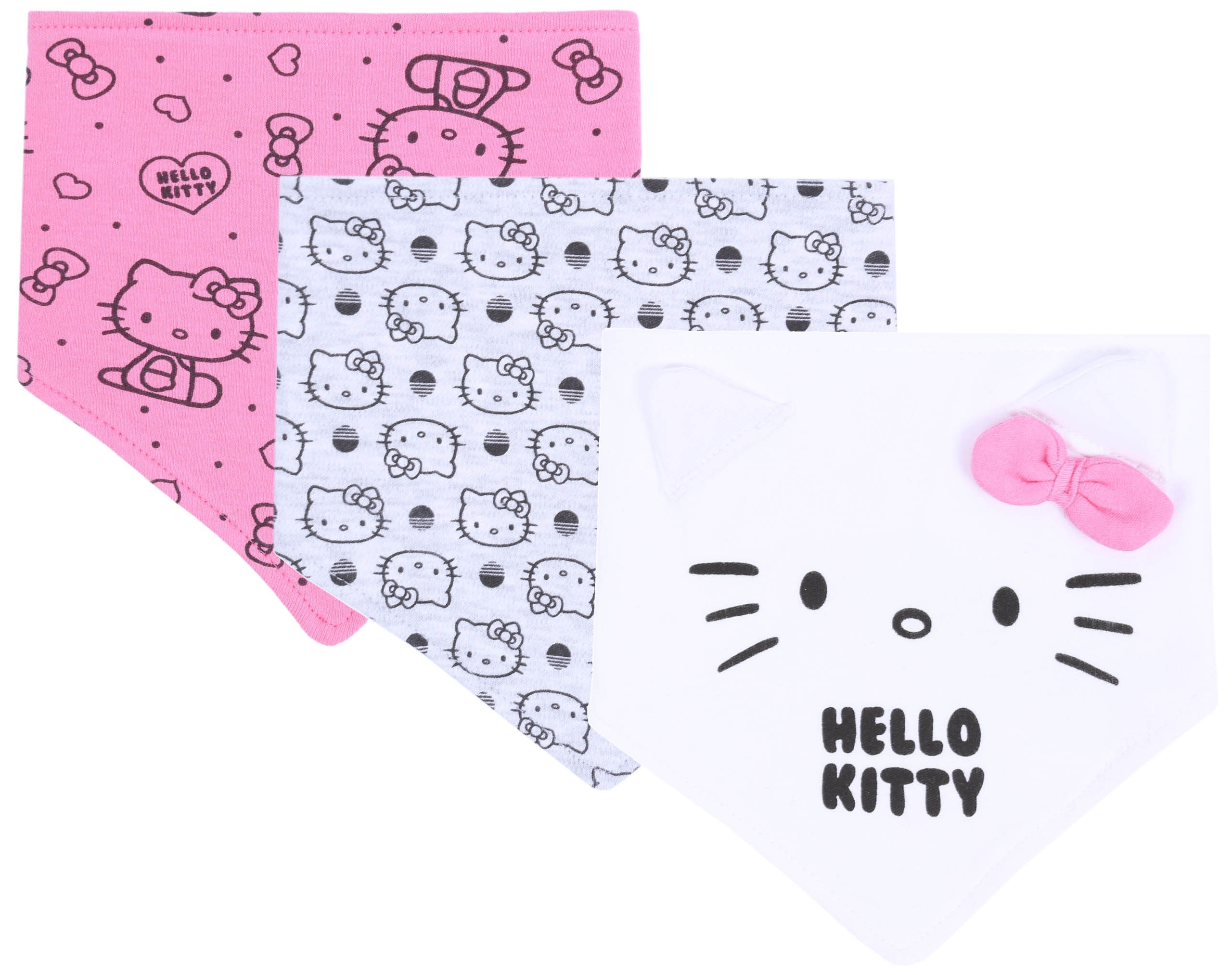Zestaw trzech sztuk śliniaków, w biało - różowych odcieniach z motywem Hello Kitty.