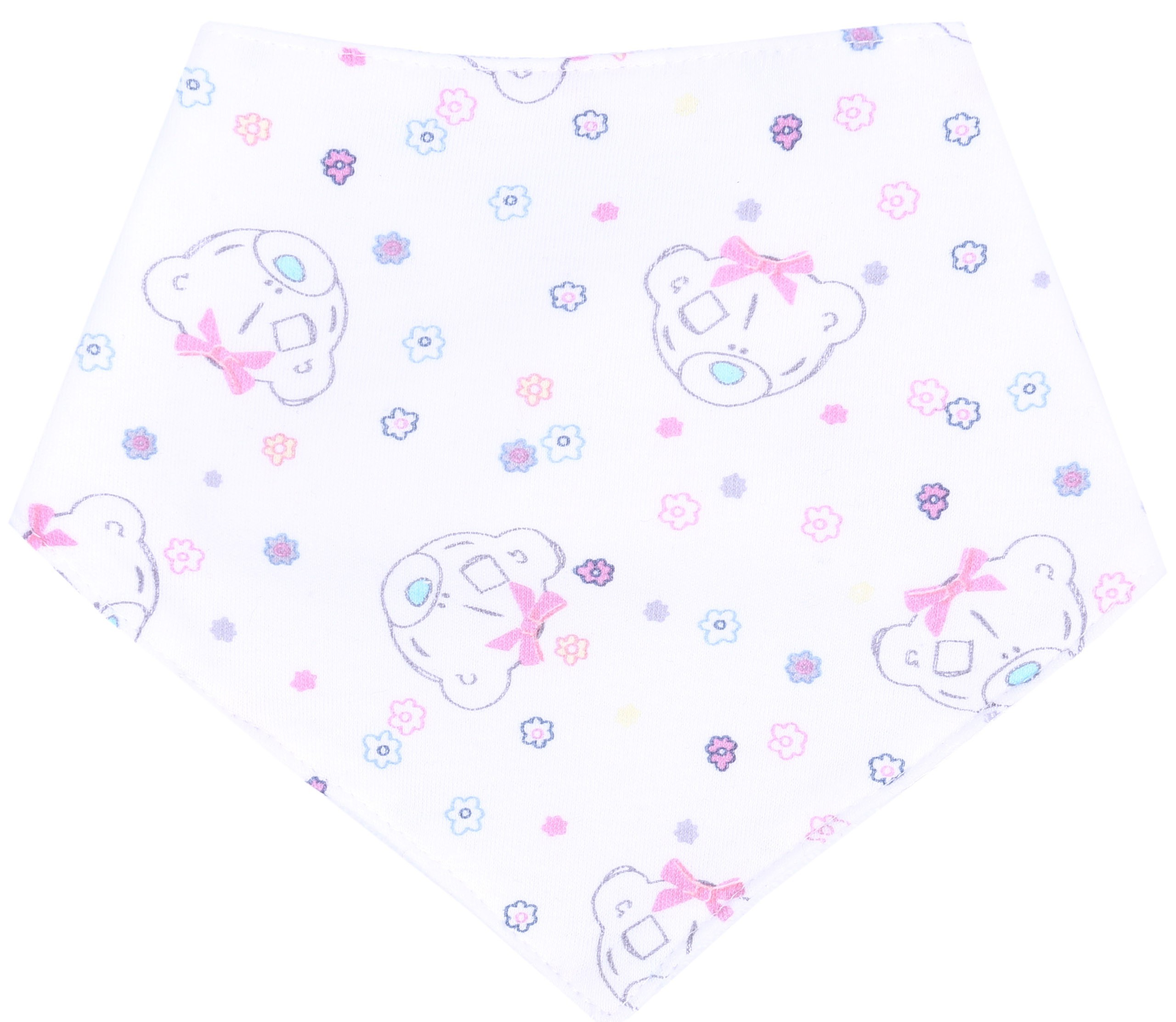 Zestaw trzech sztuk śliniaków, w biało - morelowym kolorze z motywem kwiatów i misia.