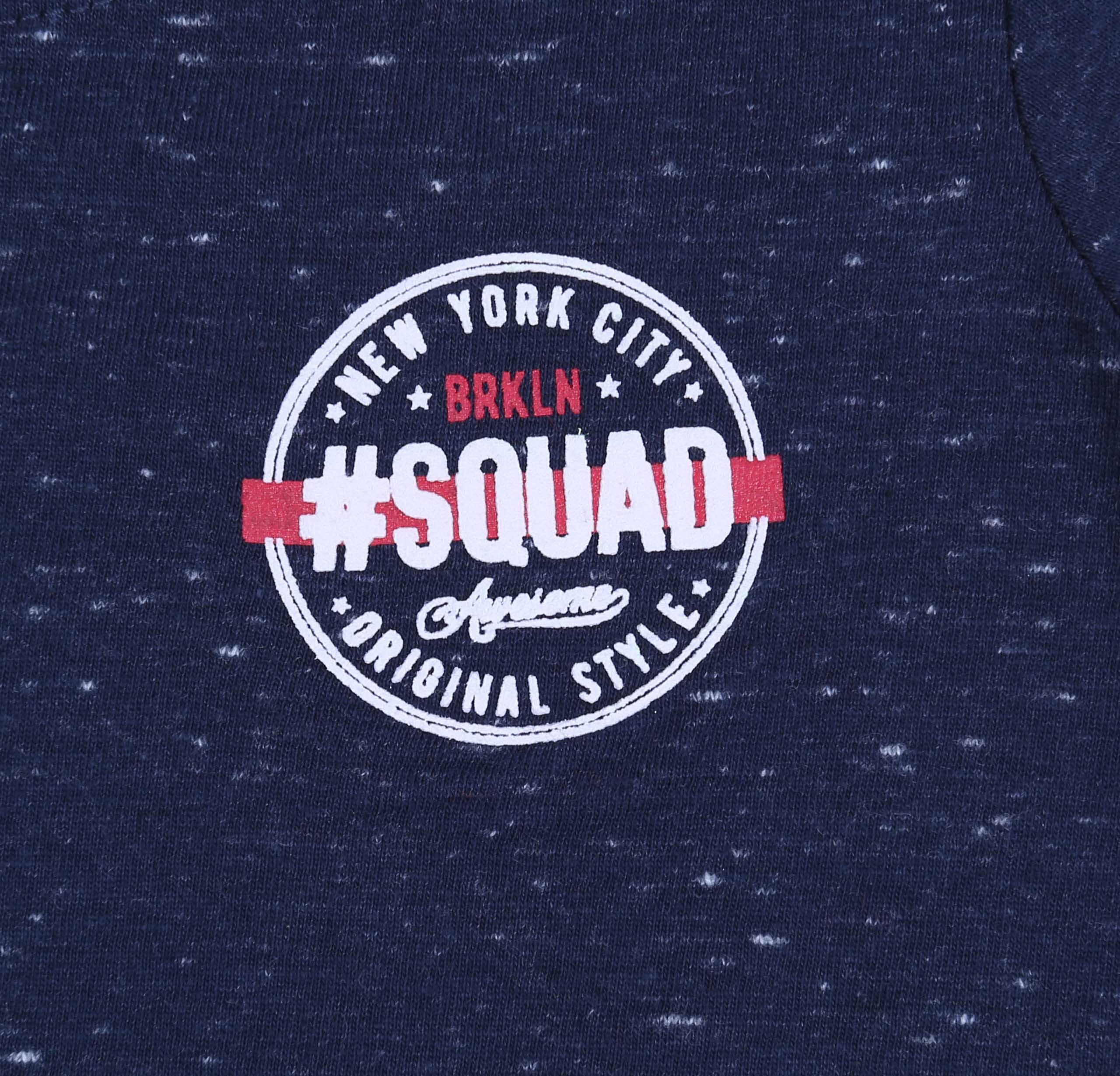 Granatowa koszulka na krótki rękaw, tył delikatnie dłuższy.