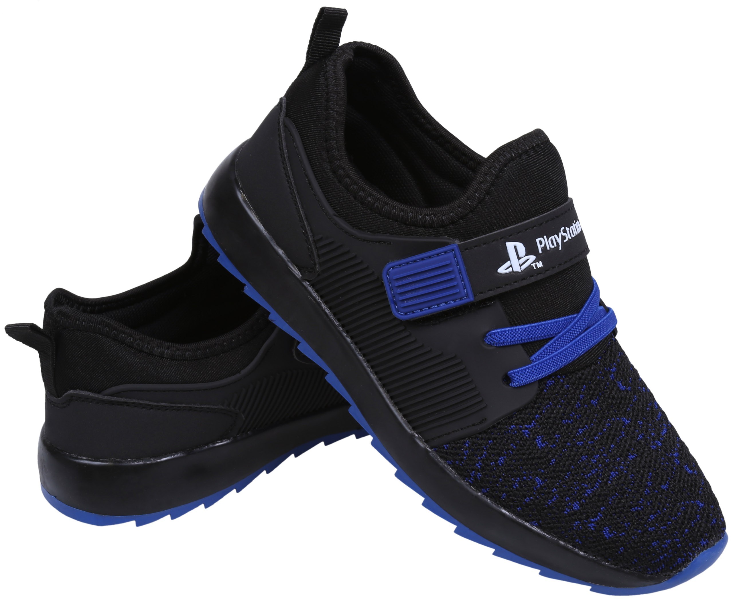 Czarne, chłopięce buty sportowe z motywem konsoli do gier Playstation.