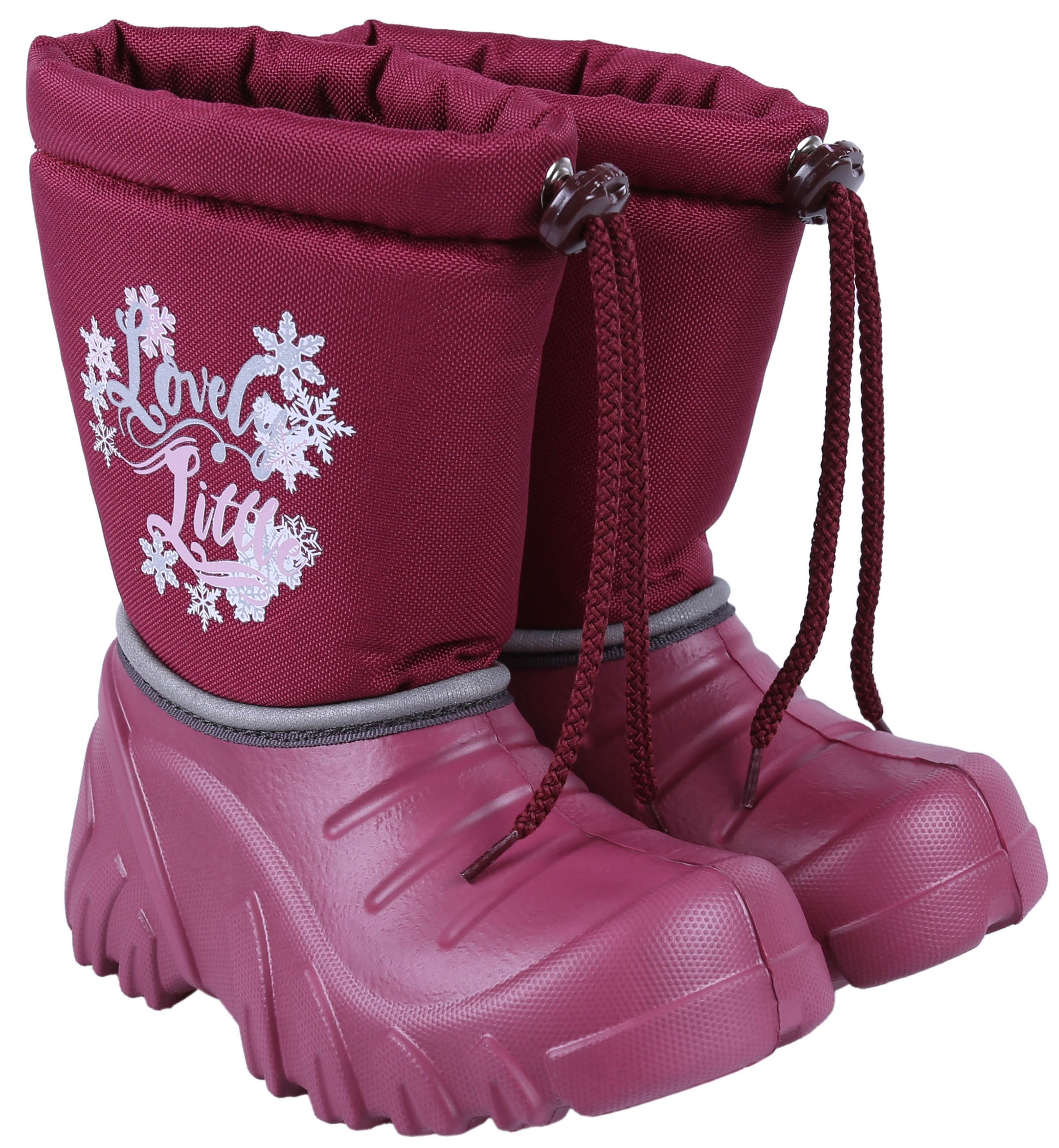 Burgundowe śniegowce dla dzieci wyprodukowane w Polsce.