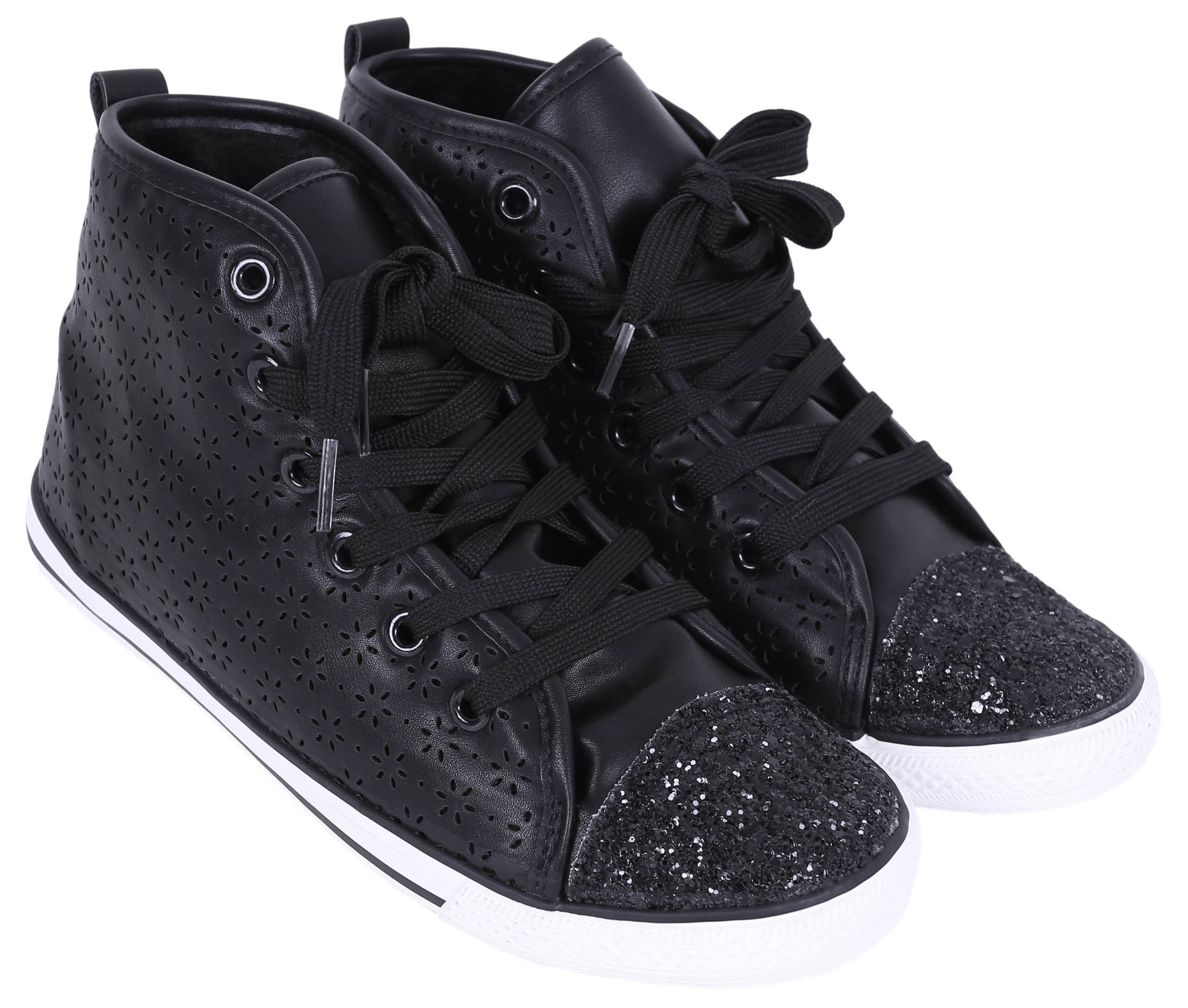 Ozdobione czarnym brokatem.
