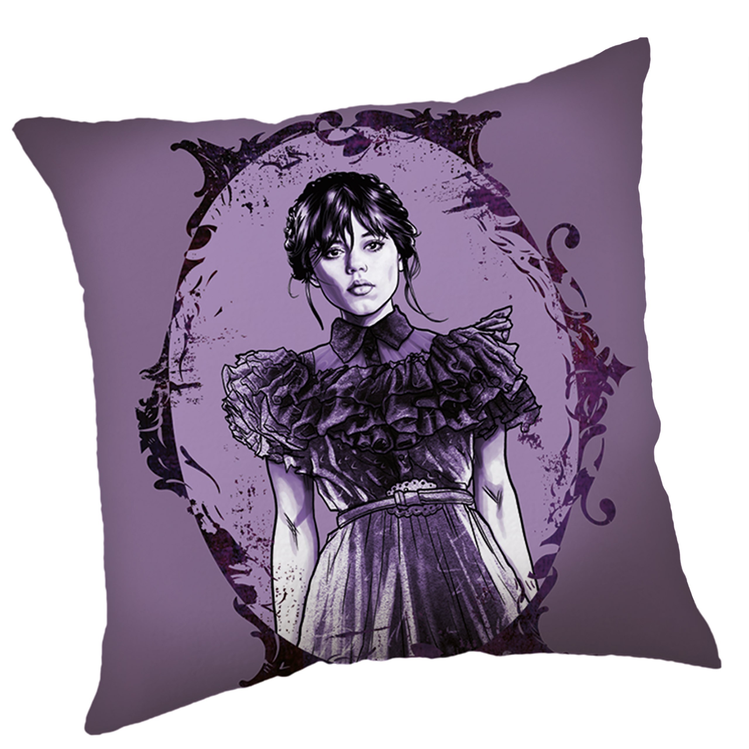 Fioletowa poduszka kwadratowa "Wednesday" to idealny dodatek do każdego wnętrza, inspirowany kultowym stylem bohaterki.