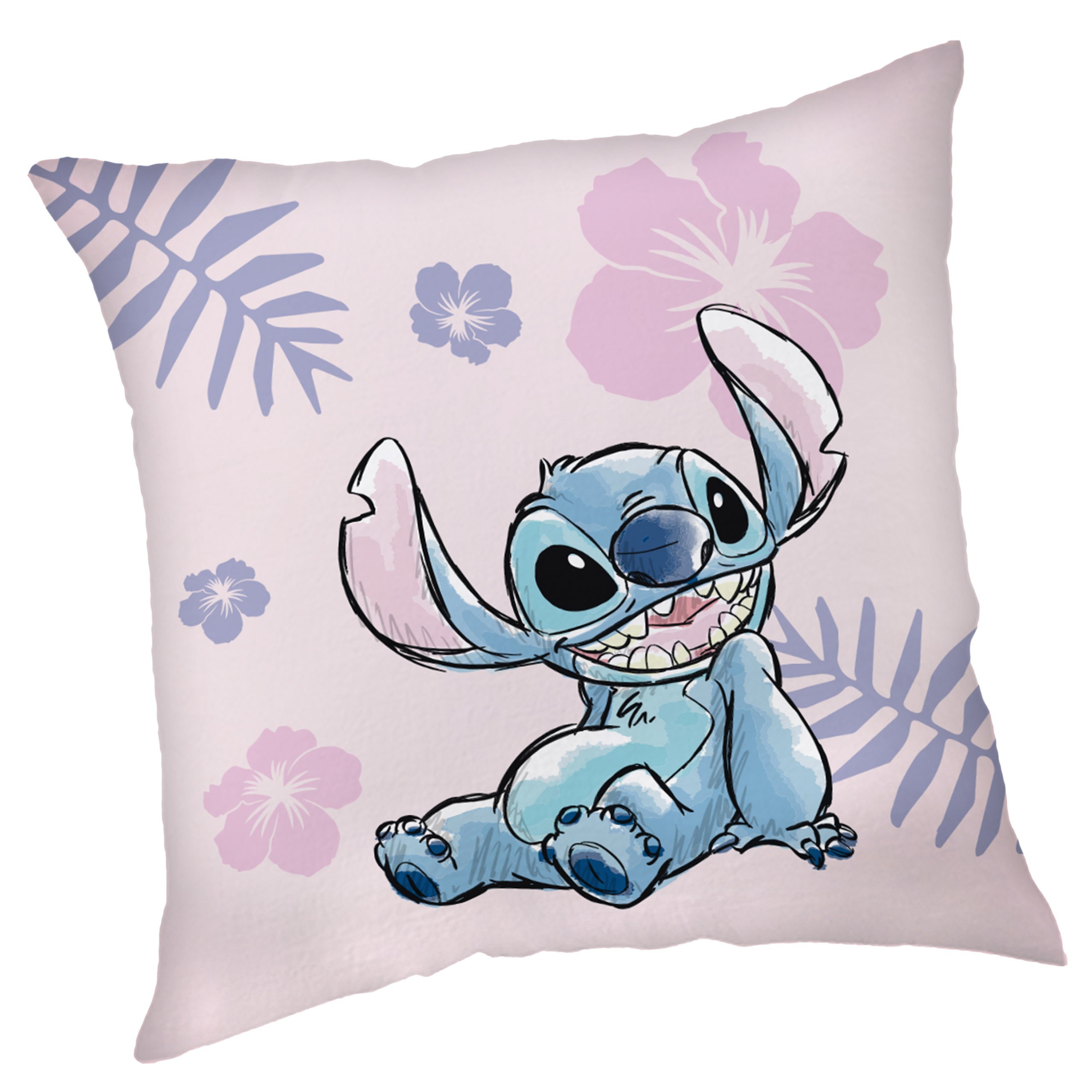 Kolorowa poduszka z nadrukami sprawdzi się jako dekoracja każdego wnętrza, a szczególnie spodoba się fanom Stitch'a.