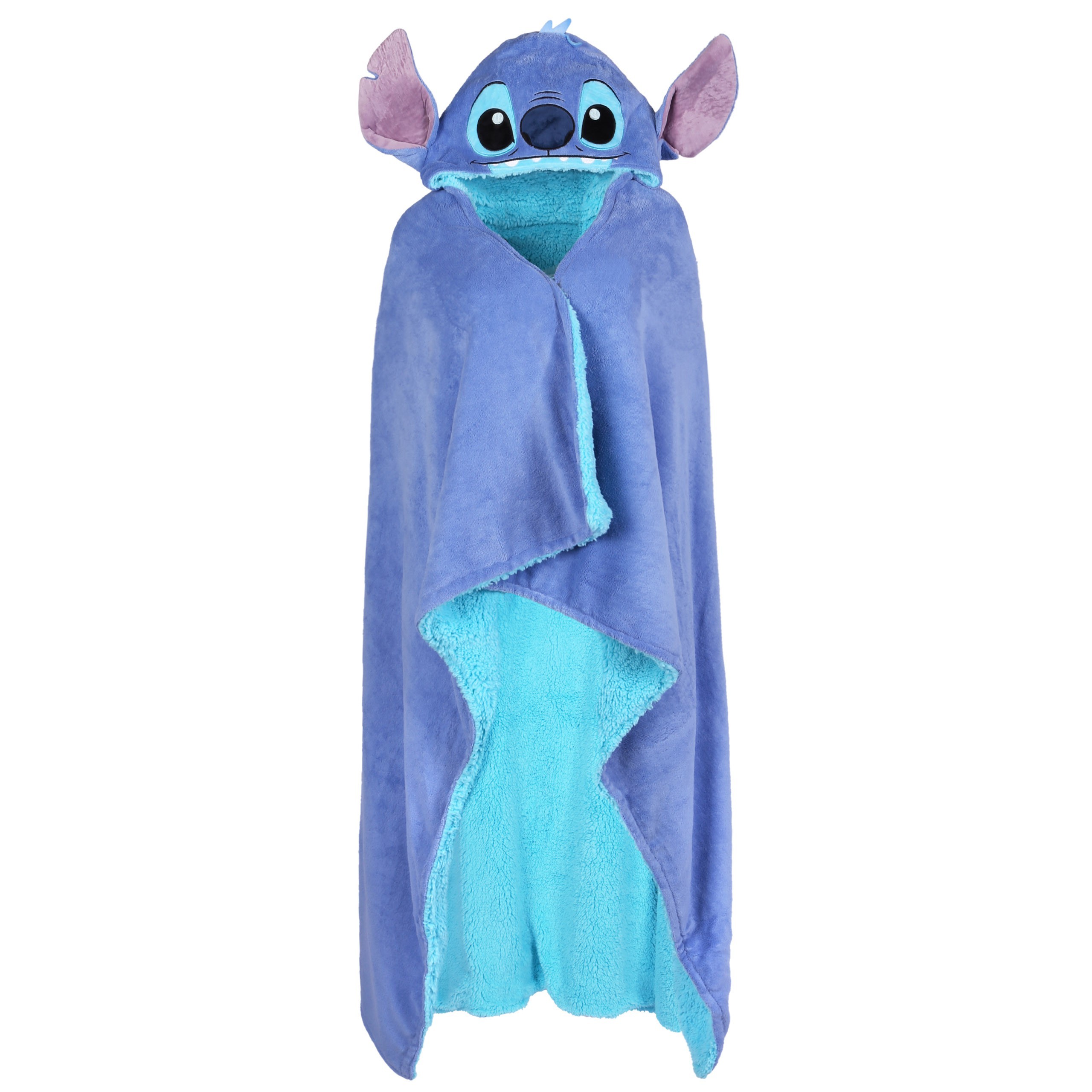 Duża, niebieska narzutka z kapturem przedstawiającym postać Sticha, postaci z filmu animowanego "Lilo i Stich".