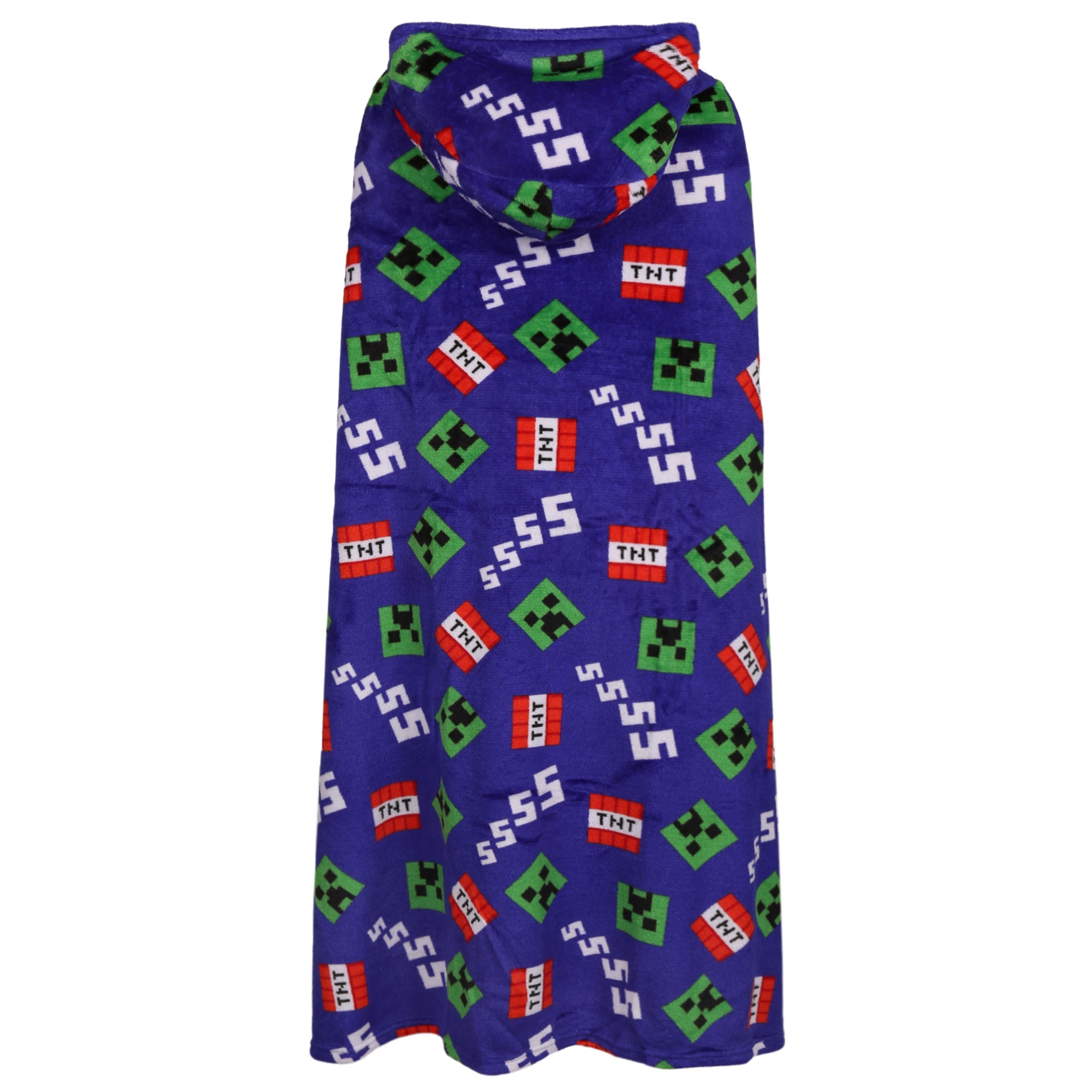 Duża, granatowo-zielona narzutka z kapturem, w powtarzający się wzór Creepera postaci z gry Minecraft.