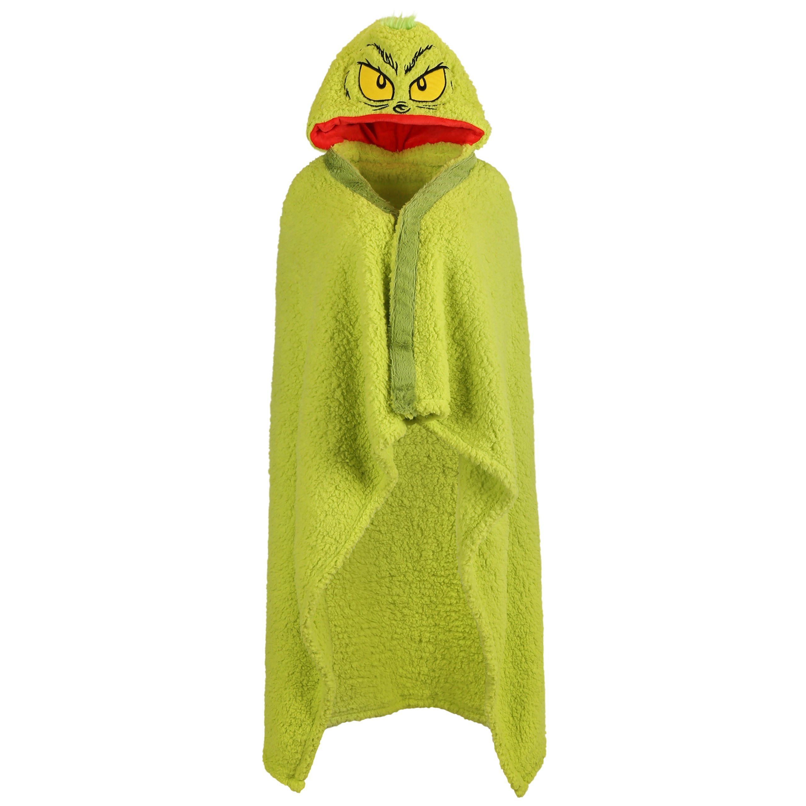 Ta urocza narzuta/koc z kapturem to idealny dodatek do twojego domu na okres świąteczny, przedstawia tytułowego bohatera znanego z filmu "Grinch", co nadaje jej wyjątkowego uroku świątecznego.