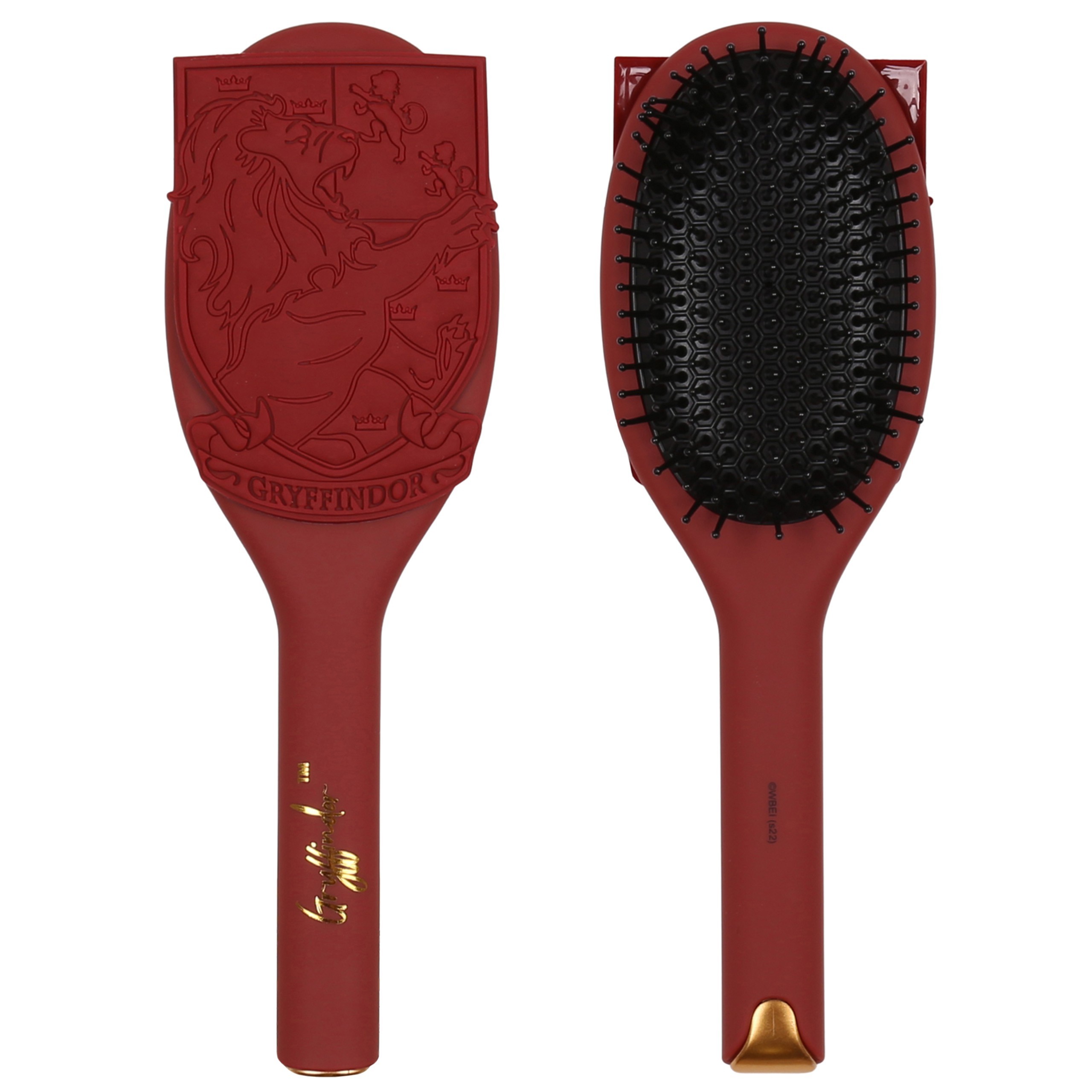 Bordowa szczotka do włosów, z tyłu z gumową aplikacją przedstawiającą herb jednego z Domów Hogwartu-Gryffindor.
