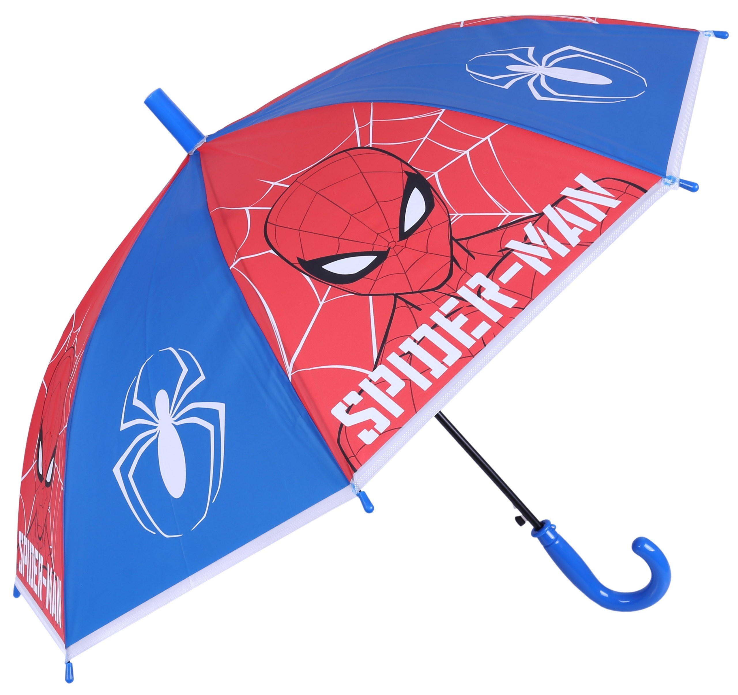 Niebiesko-czerwona parasolka z motywem bohatera Spider-Man z serii komiksów wydanych przez Marvel Comics.