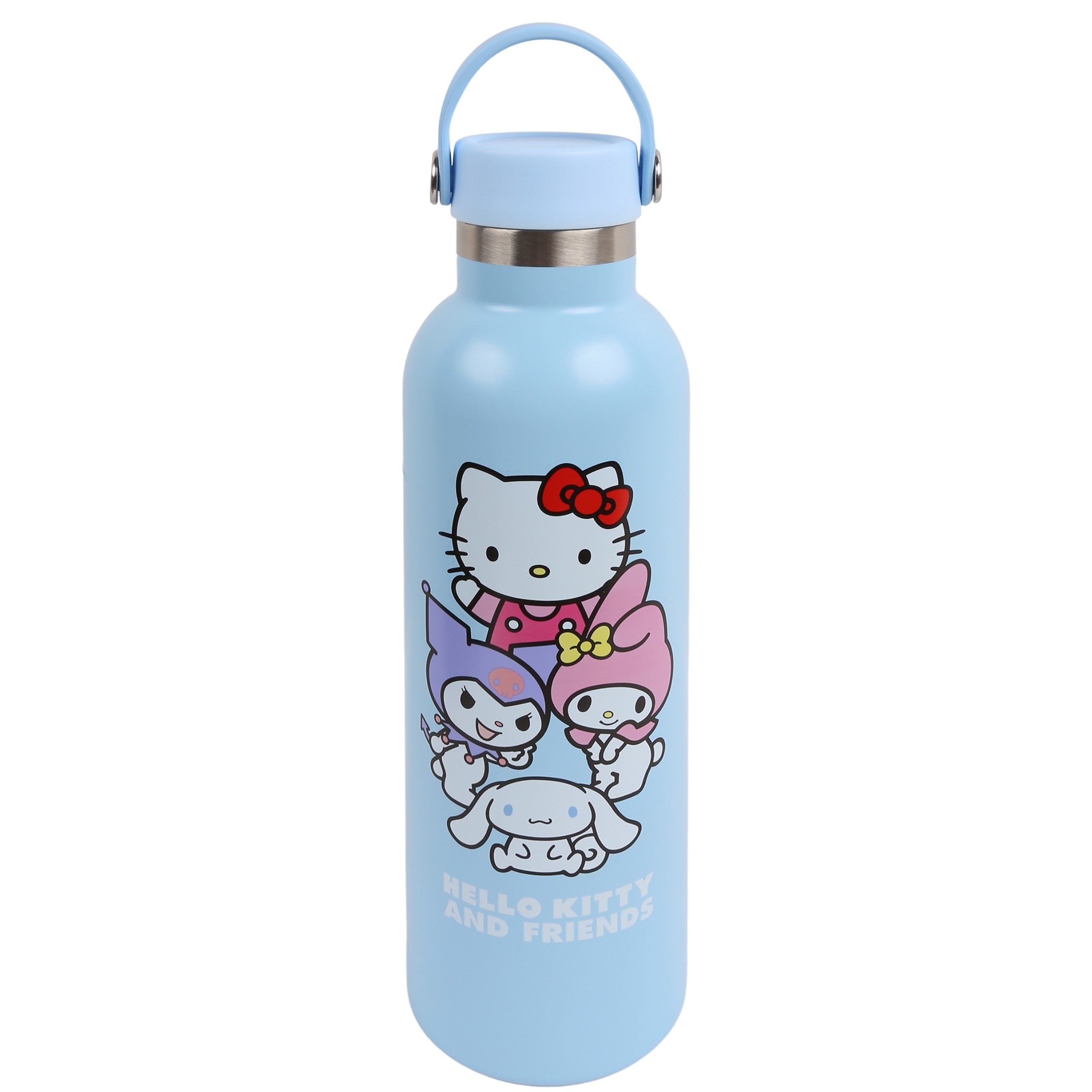 Błękitny termos Hello Kitty and Friends to elegancka i funkcjonalna butelka termiczna, wykonana w 100% ze stali nierdzewnej.