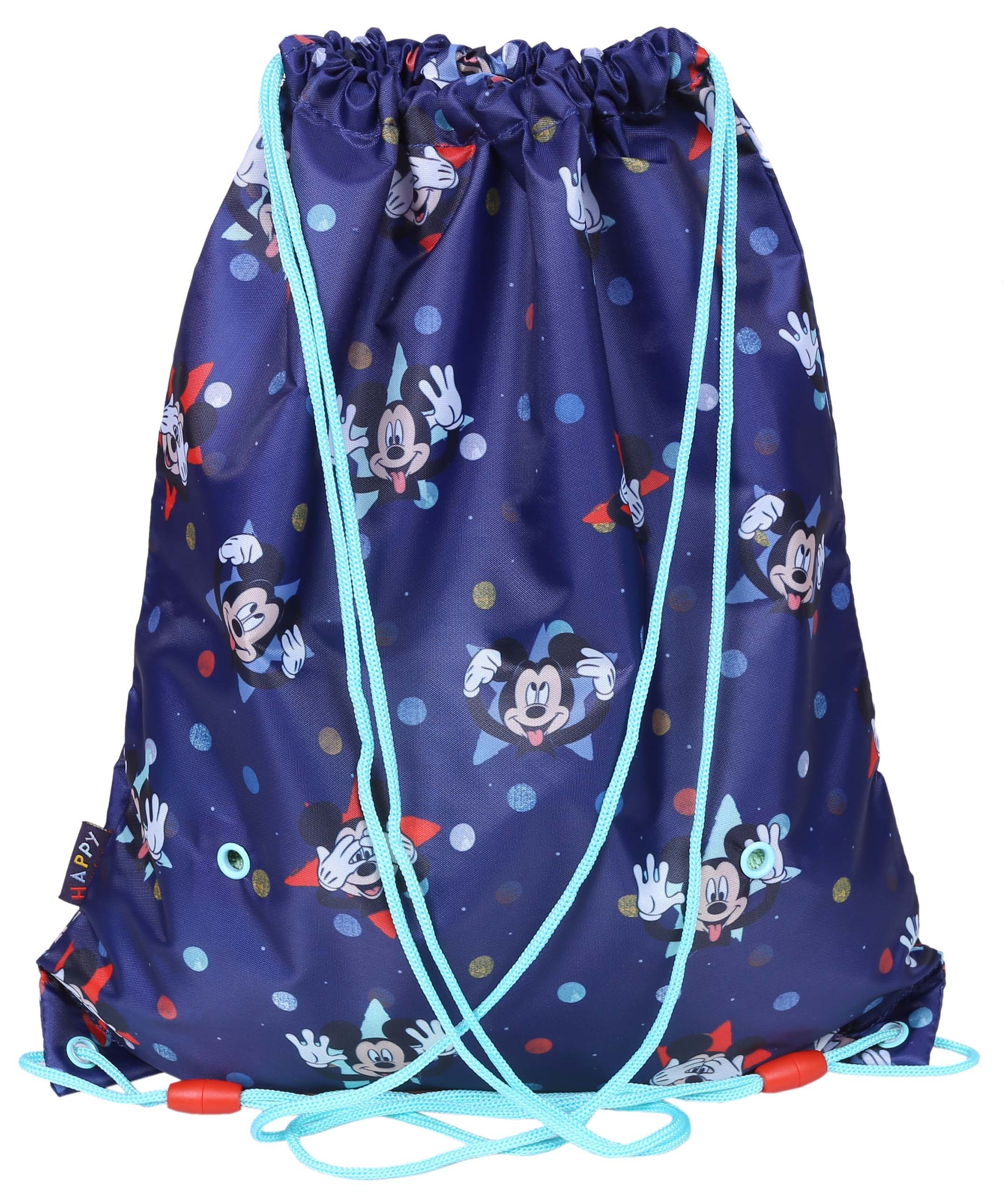 Granatowy worek gimnastyczny z motywem Myszki Mickey, bohatera kreskówek Disney'a.