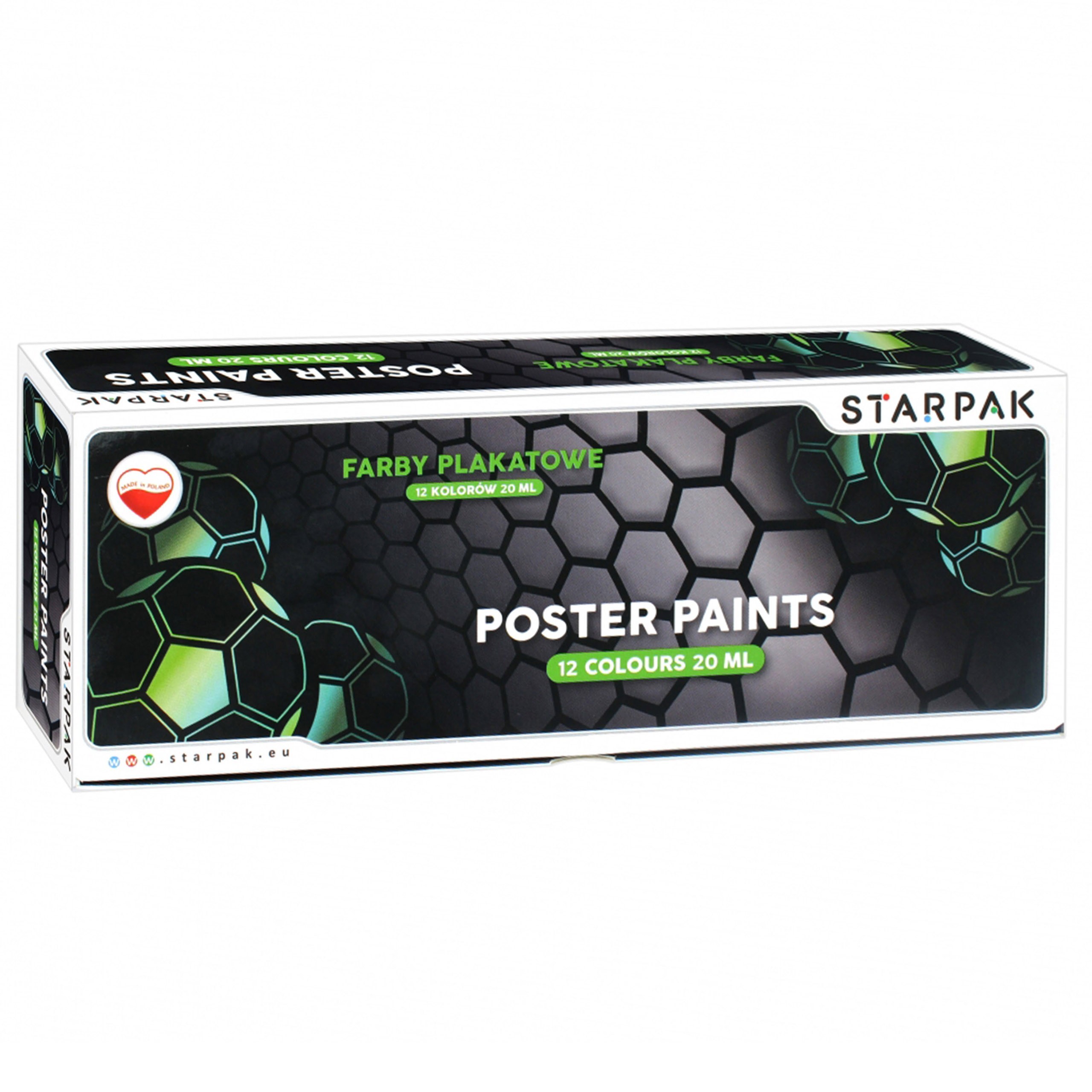 Farby plakatowe STARPAK to gęste farby wodne o kremowej konsystencji, dostępne w 12 intensywnych kolorach.