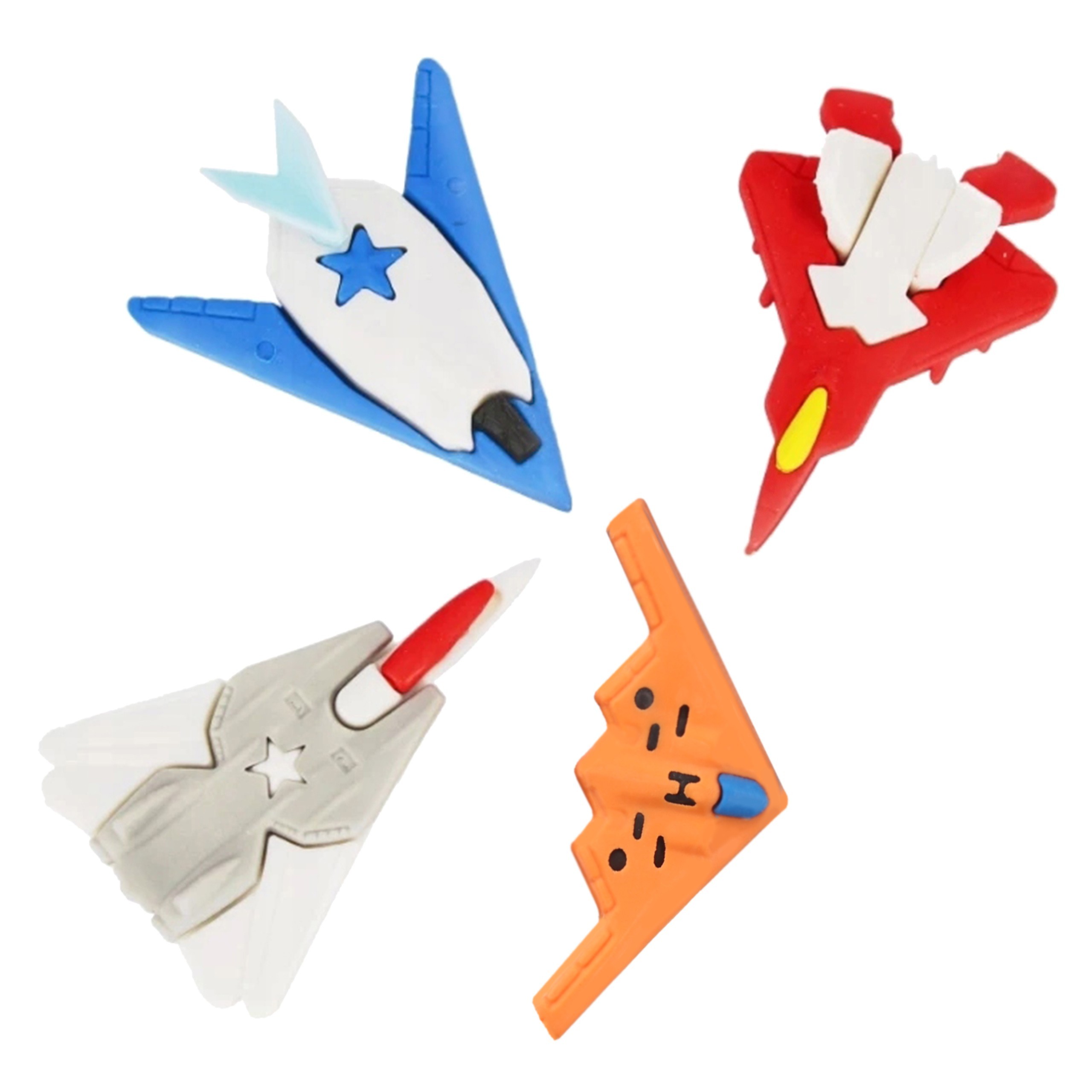 Zestaw 4 gumek do mazania w kształcie rakiet kosmicznych 3D to idealne rozwiązanie dla młodych miłośników kosmosu.