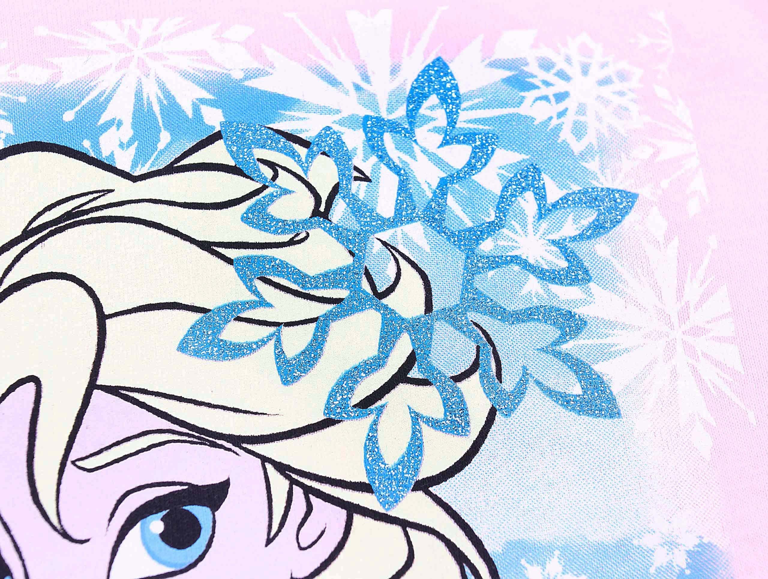 Różowa bluzka o klasycznym fasonie, z nadrukiem wizerunku księżniczki Elsy - bohaterki z filmu animowanego "Kraina Lodu".