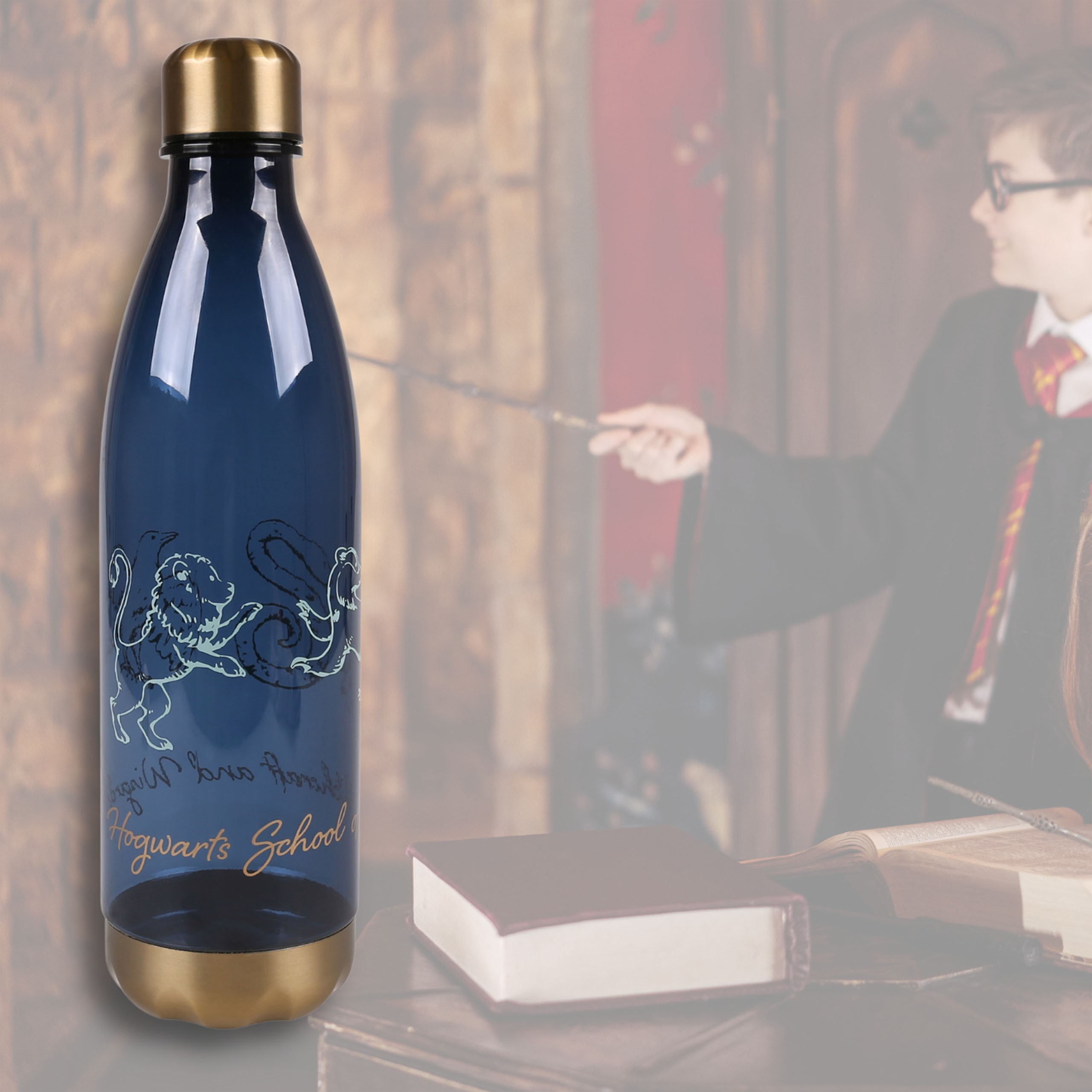 Niebieski design z eleganckim złotym herbem Hogwartu nadaje butelce wyjątkowego charakteru, który z pewnością przypadnie do gustu fanom serii.