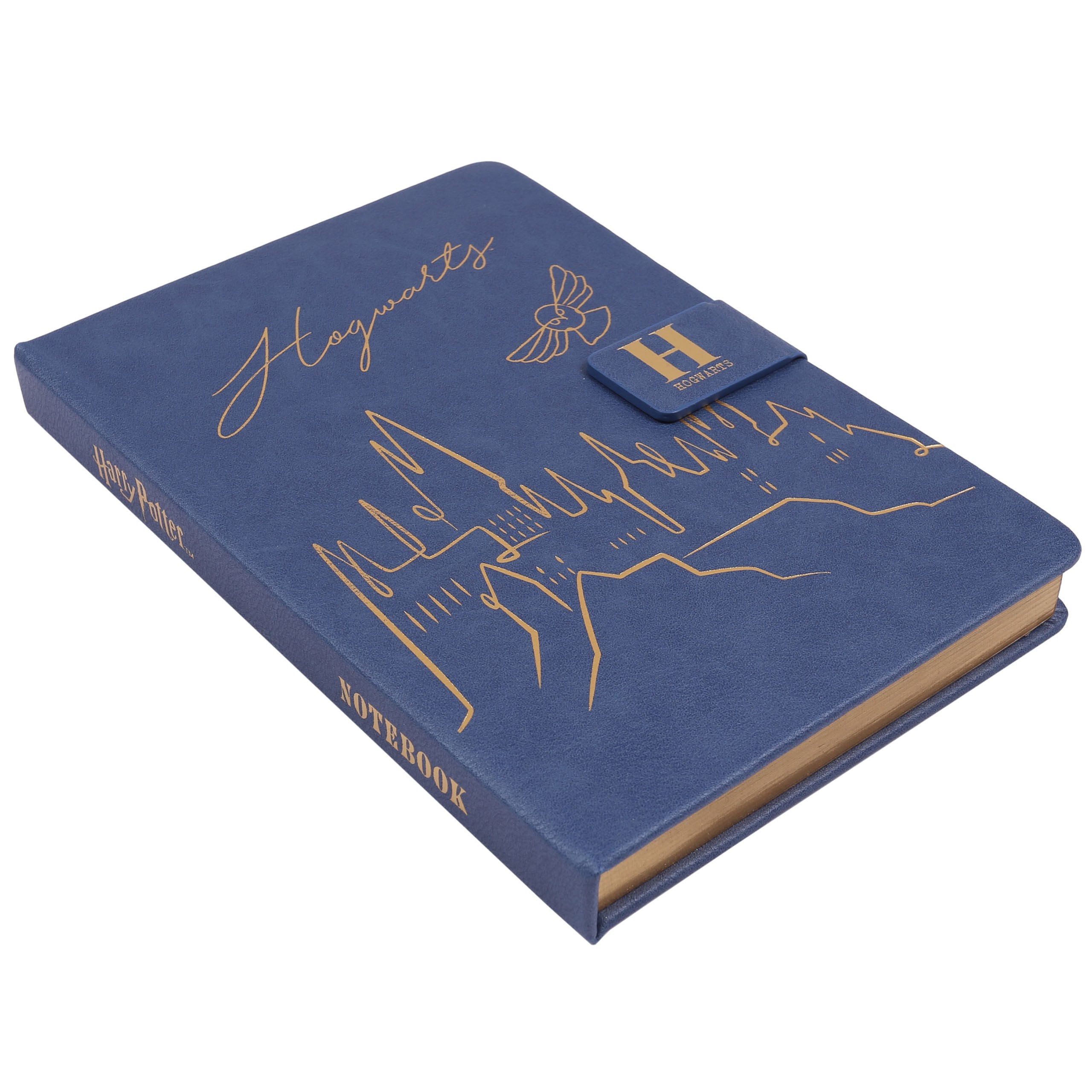 Notatnik w niebieskiej oprawie z ekoskóry, z motywem Szkoły Magii i Czarodziejstwa - HOGWARTS.