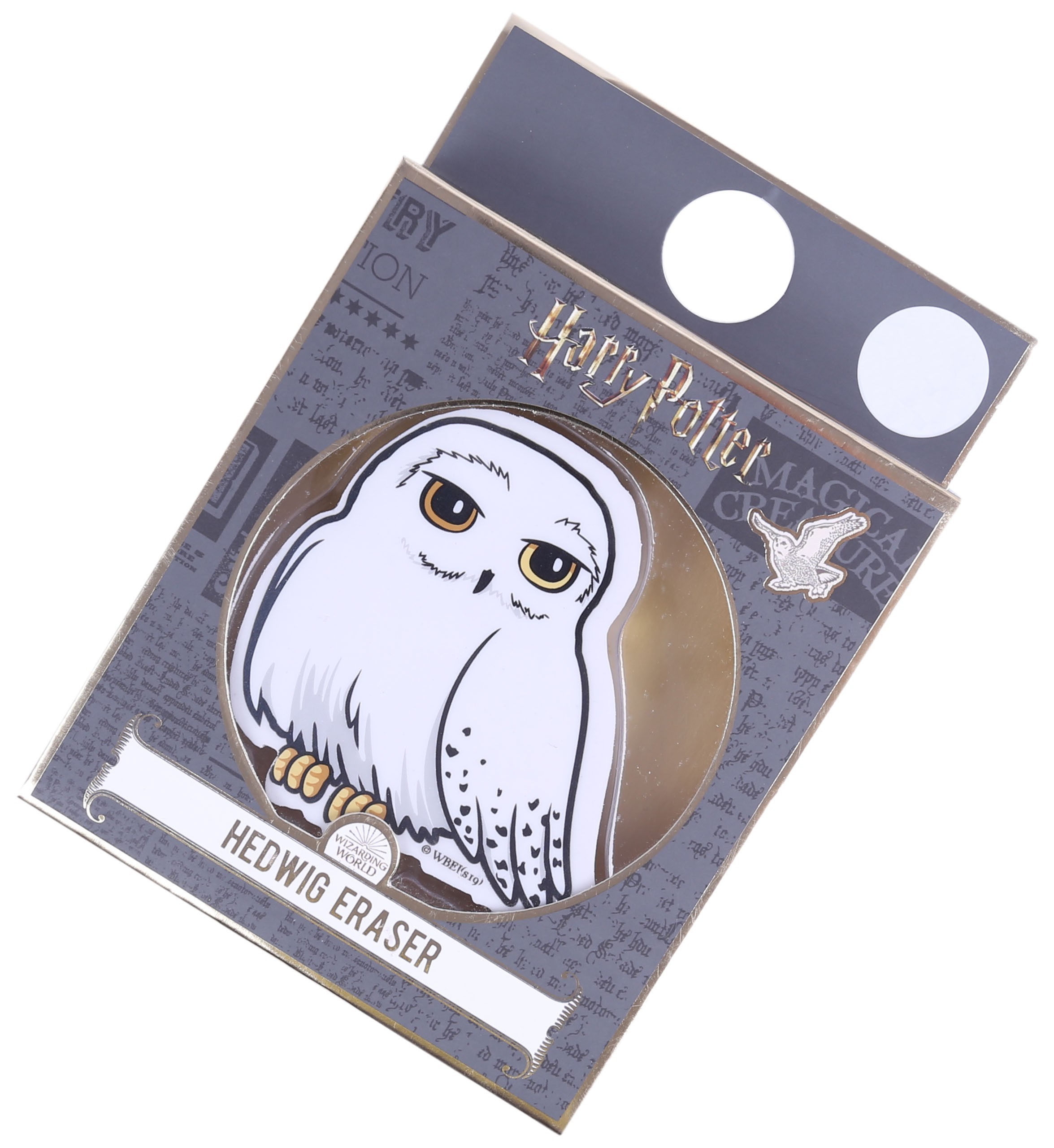 Duża, biała gumek do mazania, z wizerunkiem sowy Harry'ego Potter'a - Hedwigi.