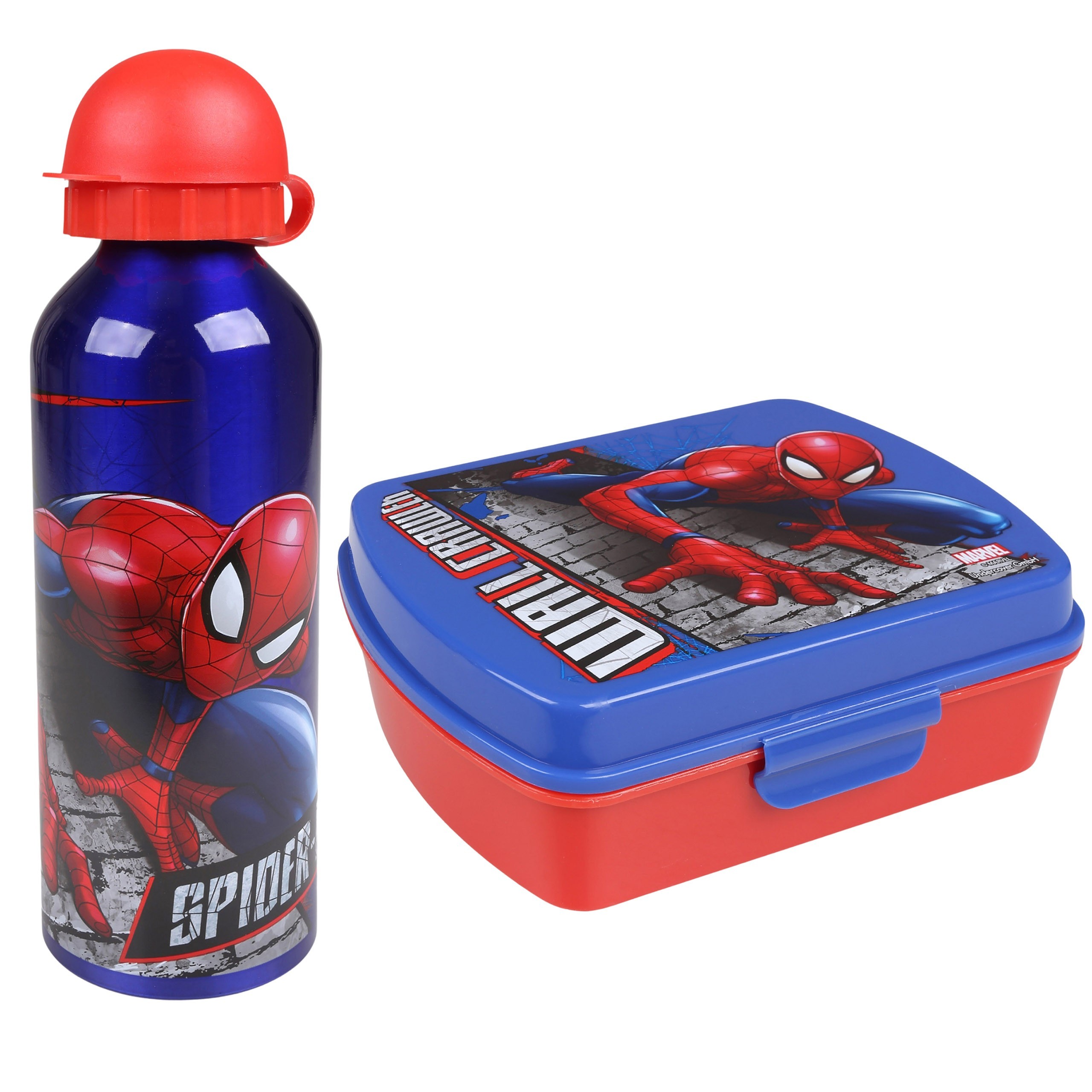 MARVEL SpiderMan zestaw składający się z aluminiowego bidonu o pojemności 500 ml oraz praktycznego pudełka śniadaniowego to idealne akcesoria dla każdego młodego fana superbohaterów.