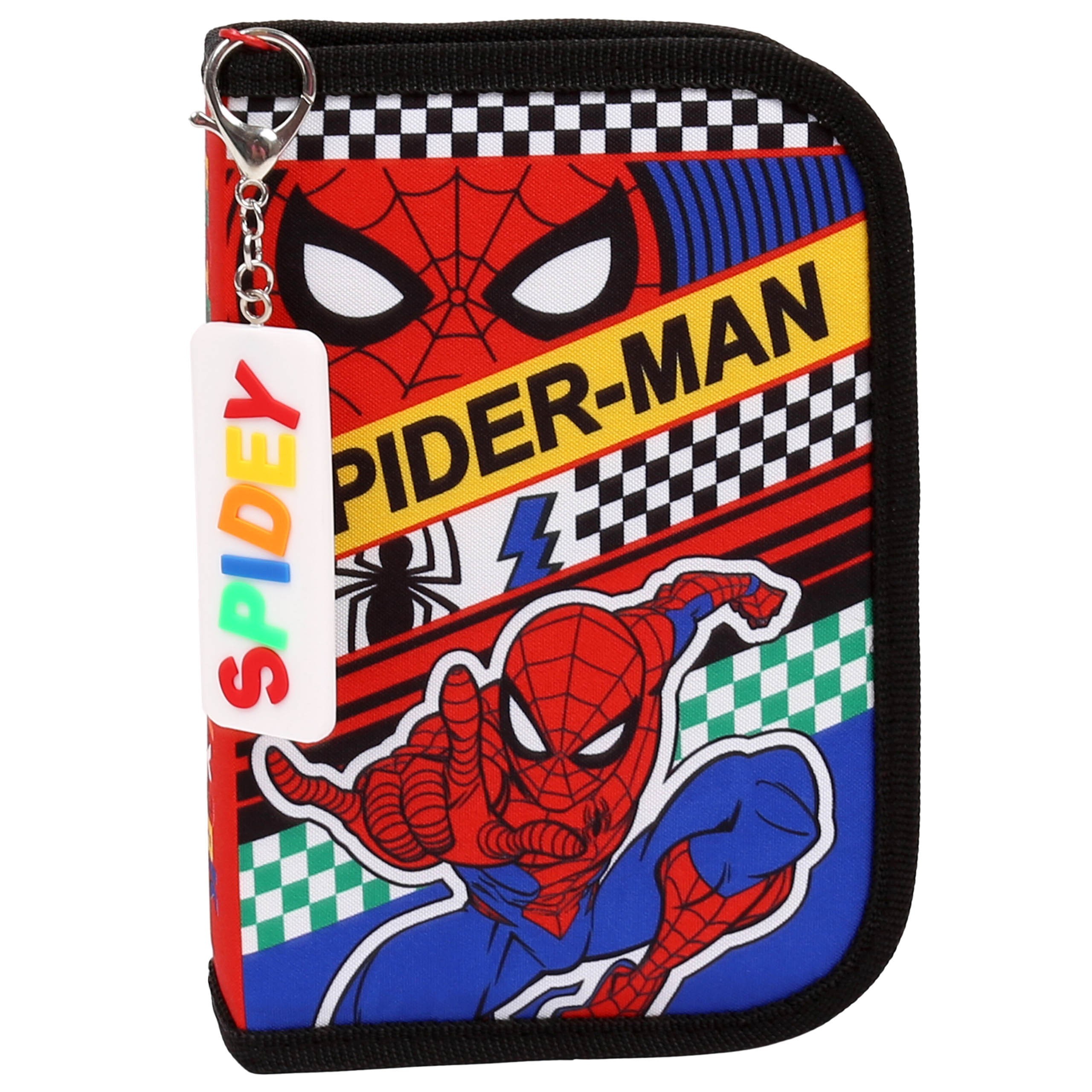 Kolorowy, jednoklapowy piórnik z wyposażeniem i motywem Spider Mana to niezbędny dodatek do wyprawki szkolnej Twojej pociechy.