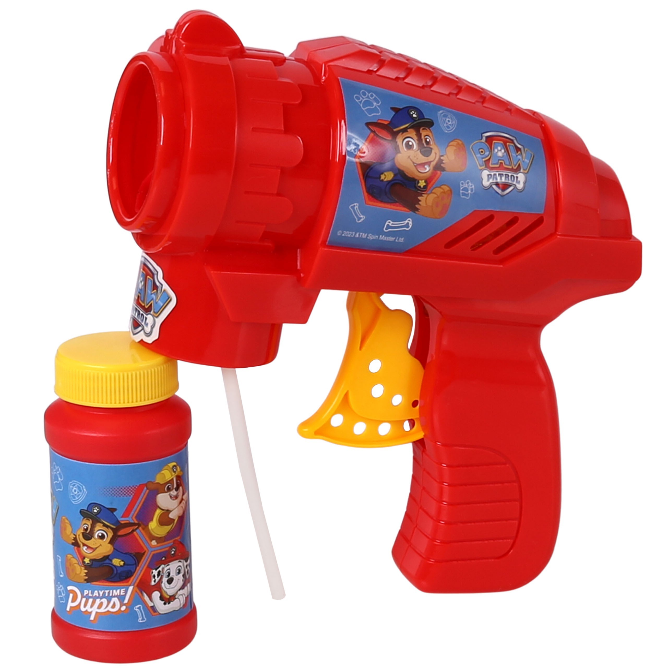 Pistolet do robienia baniek z motywem serialu animowanego "Psi Patrol" ucieszy nie tylko bawiące się dziecko ale i wszystkich wokół.