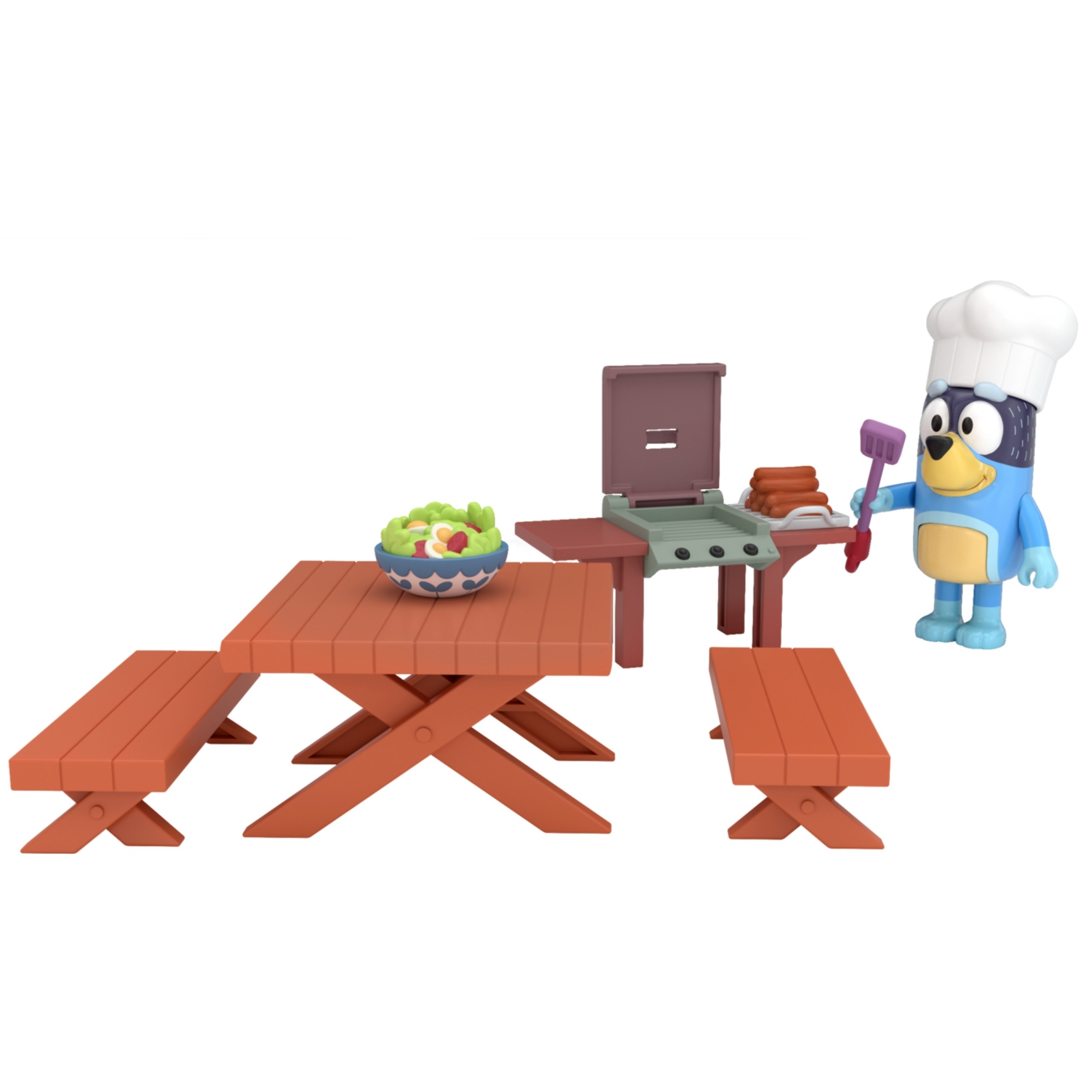 Zestaw Bluey Family Backyard BBQ to doskonała zabawka dla małych fanów serialu Bluey, pozwalająca na odgrywanie rodzinnych scenek z podwórkowego grilla.