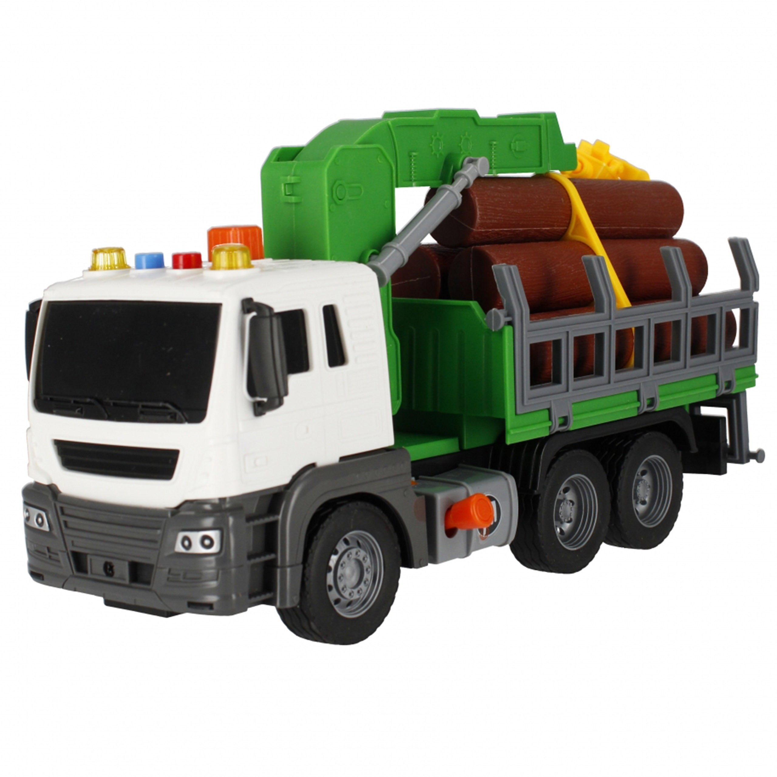 Auto ciężarowe dźwig z przyczepą i kłodami drewna od MEGA CREATIVE to idealna zabawka dla dzieci powyżej 3 roku życia, rozwijająca ich wyobraźnię.